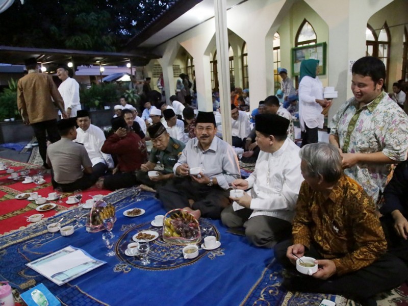Wali Kota Jakarta Barat, Anas Effendi berserta jajaran Pemerintah Kota Administrasi Jakarta Barat menggelar buka puasa bersama warga Grogol Petamburan di Masjid Jami Nurul Falah, Jalan Tanjung Duren Utara, Kec.Grogol Petamburan, Jumat (17/6). (Foto: Yopie/beritajakarta.com)