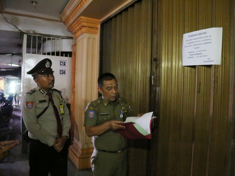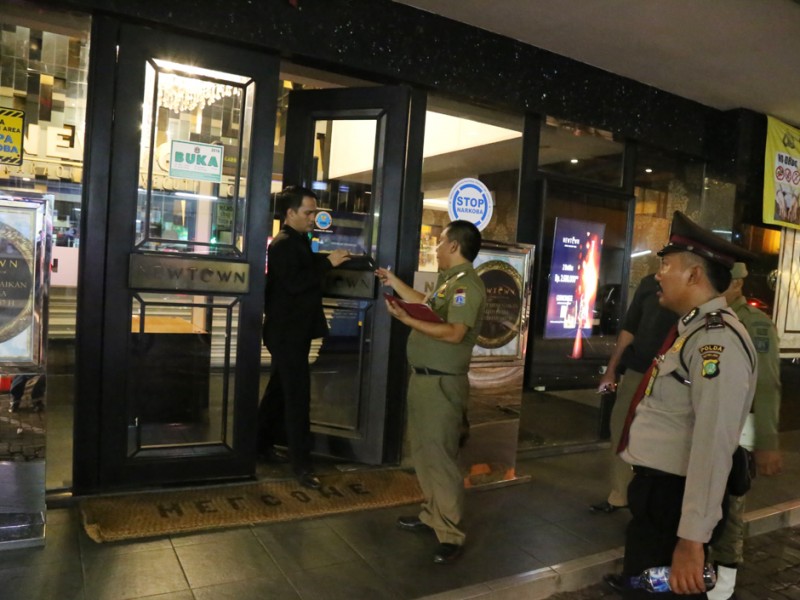 Satuan Polisi Pamong Praja (Satpol PP) bersama pihak Kepolisian melakukan pengawasan jelang malam Nuzulul Quran, pengawasan tempat hiburan malam di kawasan Taman Sari, Jakarta Barat, Selasa (21/6). (Foto: Reza/beritajakarta.com)