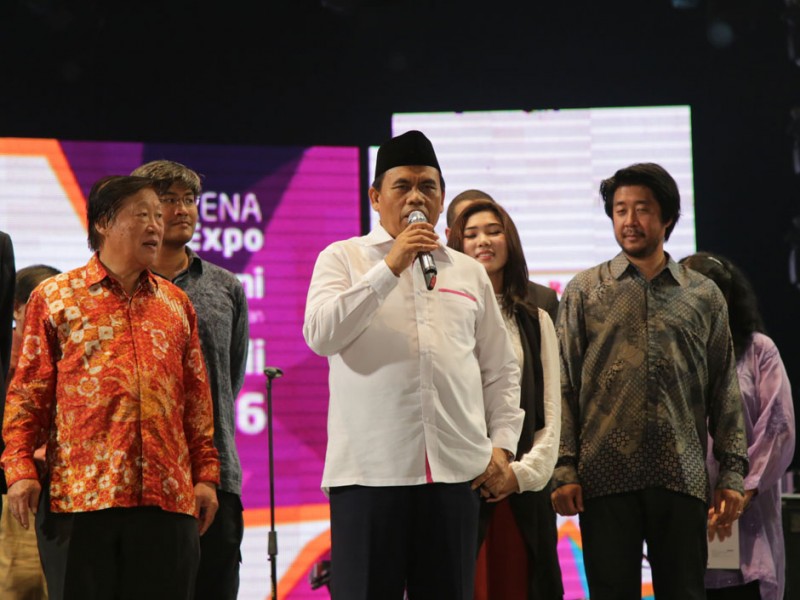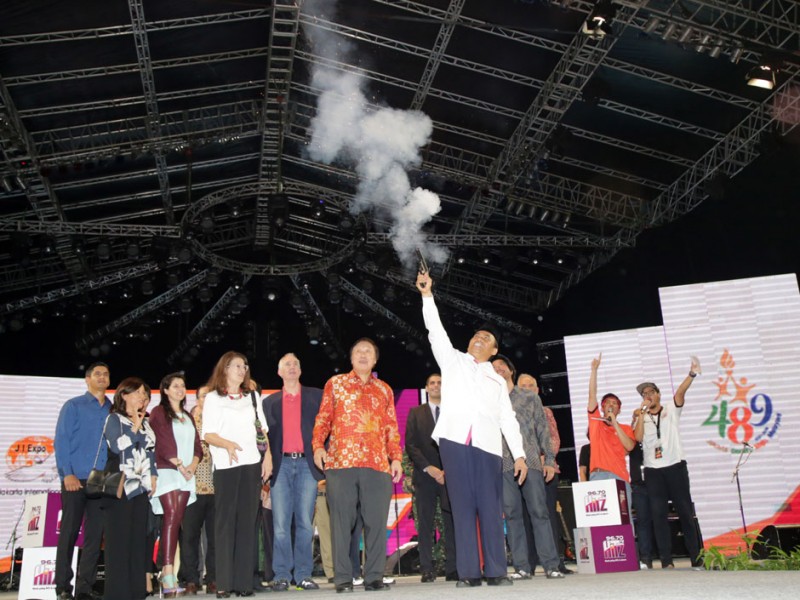 Sekretaris Daerah DKI Jakarta, Saefullah membuka Pesta Kembang Api dalam rangka Perayaan HUT DKI Ke-489 di Panggung Utama Jakarta Fair Kemayoran 2016, Arena JIExpo Kemayoran, Jakarta Pusat, Selasa (21/6). Turut hadir dalam acara Walikota Jakarta Barat, Anas Effendi.(Foto: Yopie/Beritajakarta.com)