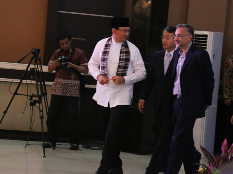 Gubernur DKI Jakarta, Basuki Tjahaja Purnama meresmikan pembangunan Light Rail Transit (LRT) Jakarta, Velodrome dan Equestrian di gedung KNPI DKI Jakarta, Jalan Balap Sepeda, Rawamangun, Jakarta Timur, Rabu (22/06). (Foto: Reza/beritajakarta.com)