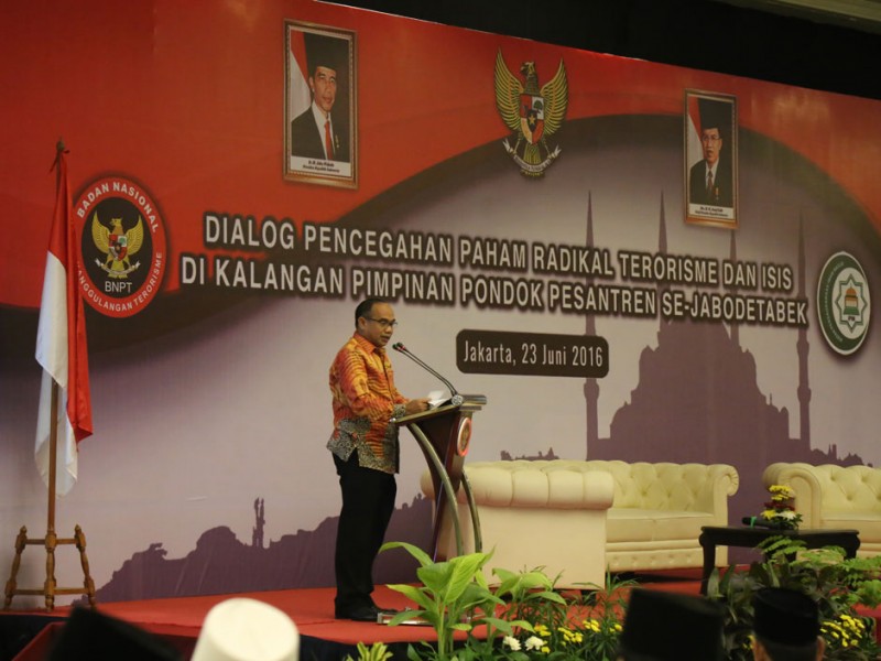 Wakil Gubernur DKI Jakarta, Djarot Saiful Hidayat menghadir dialog Pencegahan Paham Radikal Terorisme dan ISIS di kalangan pimpinan Pondok Pesantren Se-Jabodetabek di Salah satu hotel di Jakarta Selatan, Kamis (23/6).( Reza/beritajakarta.com)