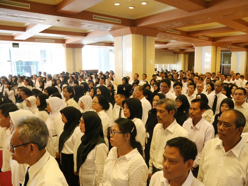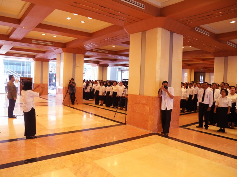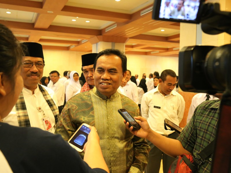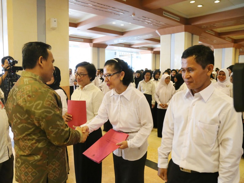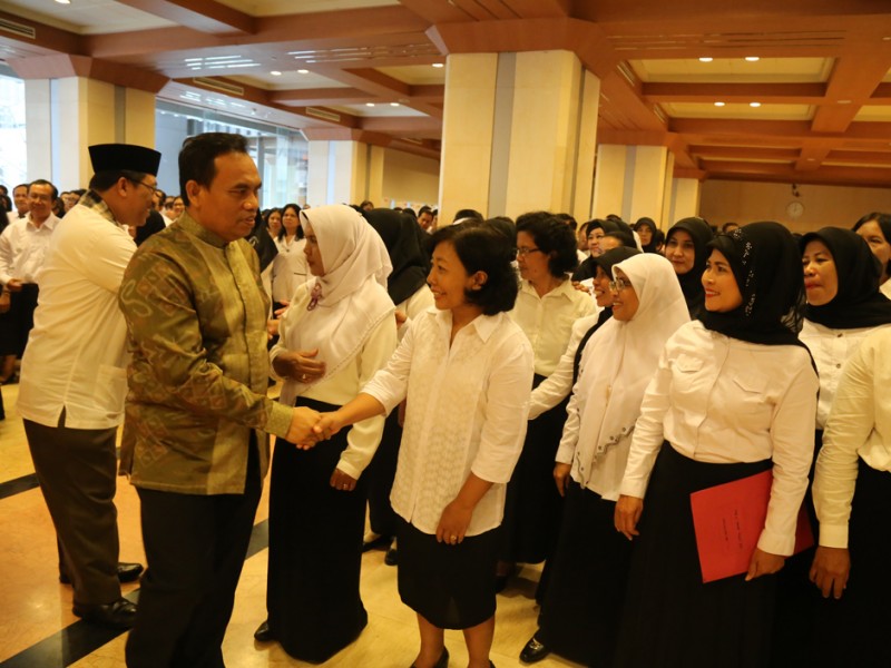 Pemerintah Provinsi DKI Jakarta Mengakat 438 guru bantu menjadi Calon Pegawai Negeri Sipil (CPNS). Pengangkatan ditandai dengan penyerahan SK secara simbolis oleh Sekretaris Daerah Provinsi DKI Jakarta, Saefullah di Balai Kota DKI Jakarta, Kamis (23/6/2016). Ratusan guru bantu ini telah mengikuti berbagai tahapan sebelumnya. (Foto: Reza/beritajakarta.com)