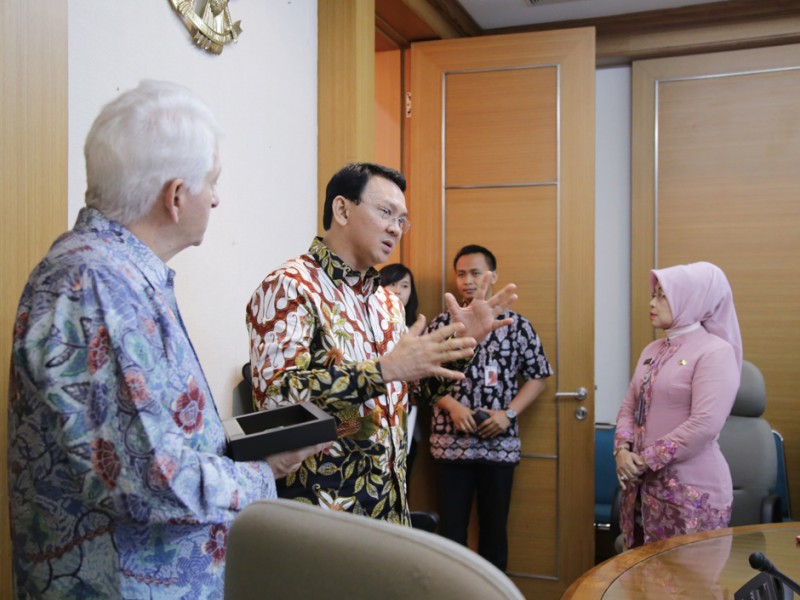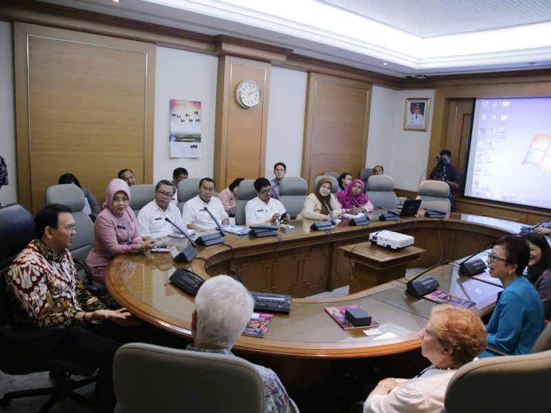 Delegasi dari University of California Los Angeles (UCLA) menemui Gubernur DKI Jakarta, Basuki Tjahaja Purnama guna membahas upaya kerjasama dalam bidang pendidikan, di Balai Kota Jakarta, Kamis (23/6). Turut hadir dalam pertemuan ini Deputi Gubernur DKI Jakarta Bidang Budaya dan Pariwisata, Sylviana Murni dan Wakil Kepala Dinas Pendidikan, Bowo Irianto. (Foto: Yopie/beritajakarta.com)