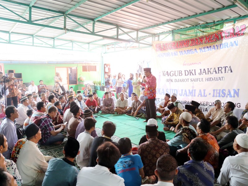 Wakil Gubernur DKI Jakarta, Djarot Saiful Hidayat menggelar safari Sholat Jumat di Masjid Al Ihsan Jalan Kampung Gempol, Kelurahan Kebon Kosong Kecamatan Kemayoran, Jakarta Pusat, Jumat (24/6). Turut hadir Kepala Badan Kesatuan Bangsa dan Politik Provinsi DKI Jakarta, Ratiyono dan Wakil Walikota Jakarta Pusat, Arifin beserta jajaran pemerintahan Kota Administrasi Jakarta Pusat. (Foto: Reza/beritajakarta.com)