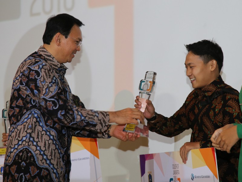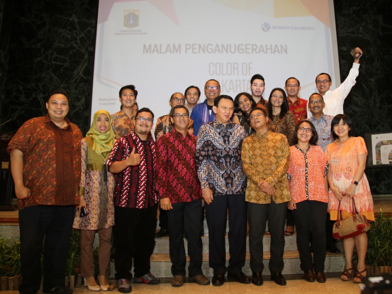 Gubernur DKI Jakarta, Basuki Tjahaja Purnama memberikan penghargaan kepada para pemenang Program Color of Jakarta 2016 di Balai Kota Jakarta, Jumat (24/6). Dalam kesempatan ini Basuki meluncurkan Album Color of Jakarta 2016. Turut hadir dalam acara Kepala Dinas Komunikasi, Informatika dan Kehumasan DKI Jakarta, Dian Ekowati. (Foto: Yopie/Beri tajakarta.com)