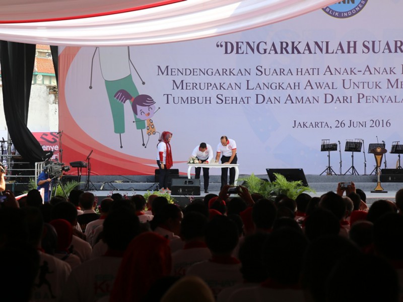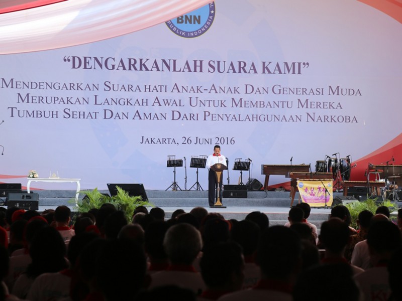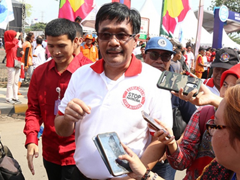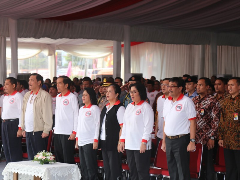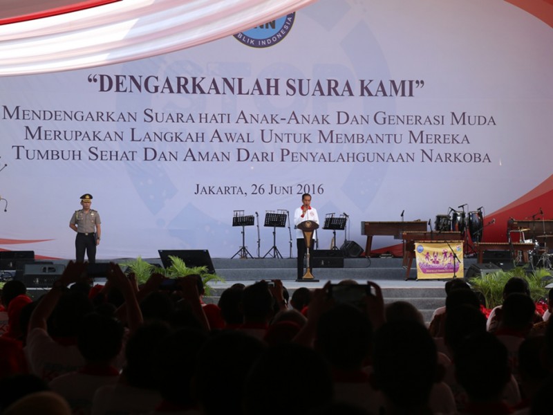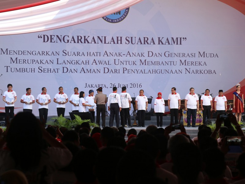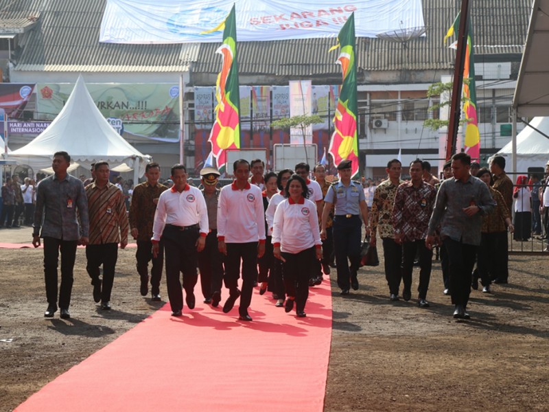 Wakil Gubernur DKI Jakarta, Djarot Saiful Hidayat mendampingi Presiden Republik Indonesia Joko Widodo (Jokowi) menghadiri peringatan Hari Anti Narkotika Internasional (HANI) di Lapangan Parkir, Jalan Cengkeh II, kawasan Kota Tua, Taman Sari, Jakarta Barat, Minggu (26/6/2016). Dalam kesempatan tersebut Jokowi menyampaikan pesan untuk bersama-sama melawan peredaran Narkoba. (Foto: Reza/beritajakarta.com)