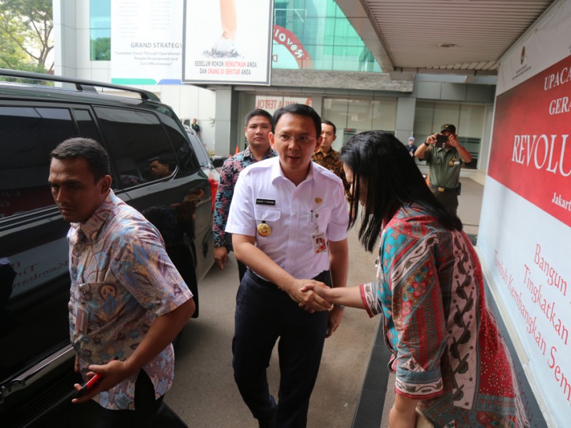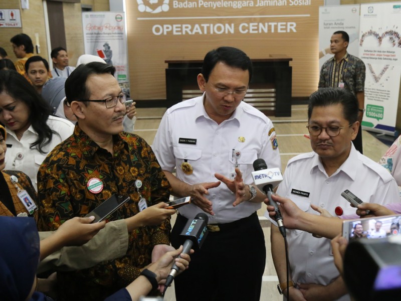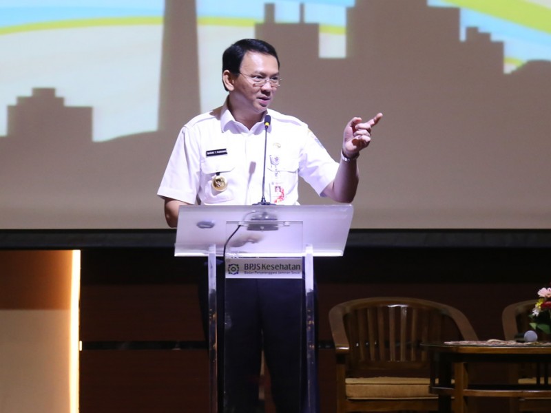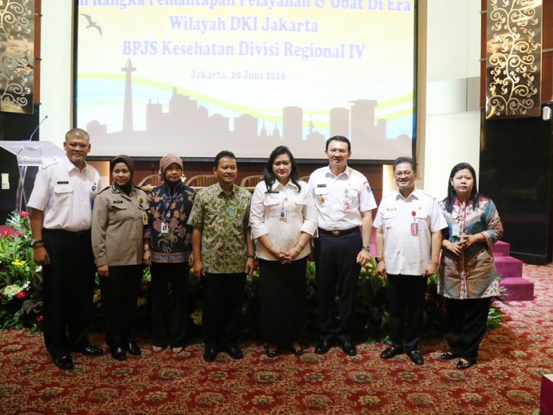 Gubernur DKI Jakarta, Basuki Tjahaja Purnama membuka dan memberikan arahan pada Rapat koordinasi petugas puskesmas, Rumah Sakit dan BPJS Kesehatan dalam rangka Pemantapan Pelayanan dan Obat di era JKN Wilayah DKI Jakarta di Kantor Pusat BPJS Kesehatan, Jl Letjend Suprapto, Cempaka Putih, Jakarta Pusat, Rabu (29/6). (Foto: Reza/beritajakarta.com)
