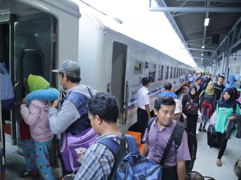 Memasuki H-6 Hari Raya Idul Fitri 1437 Hijriyah, penumpang mudik dengan menggunakan jasa Angkutan Kereta Api mulai ramai di Stasiun Senen, Jakarta Pusat, Kamis (30/6/2016).(Foto: Yopie/Beritajakarta.com)