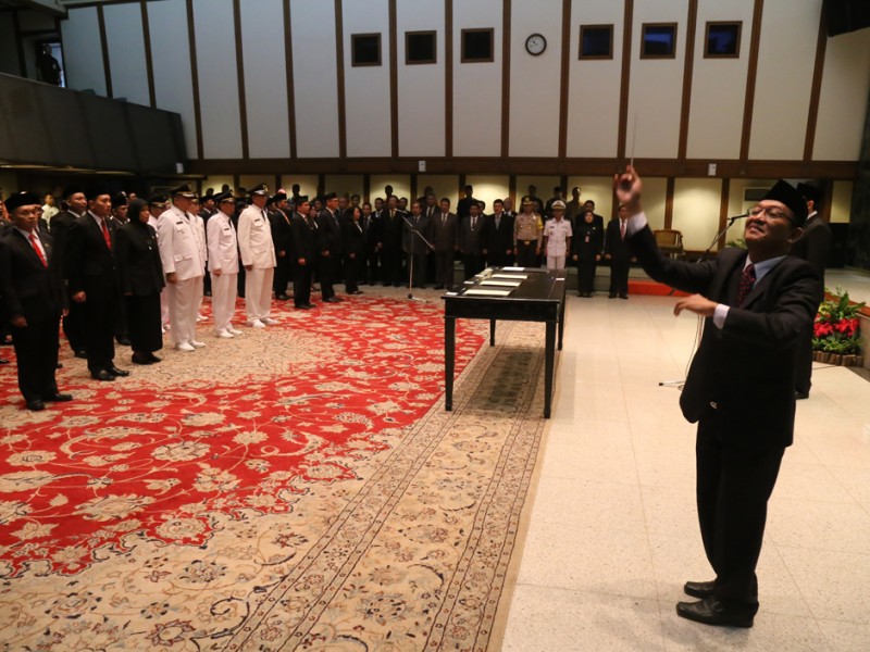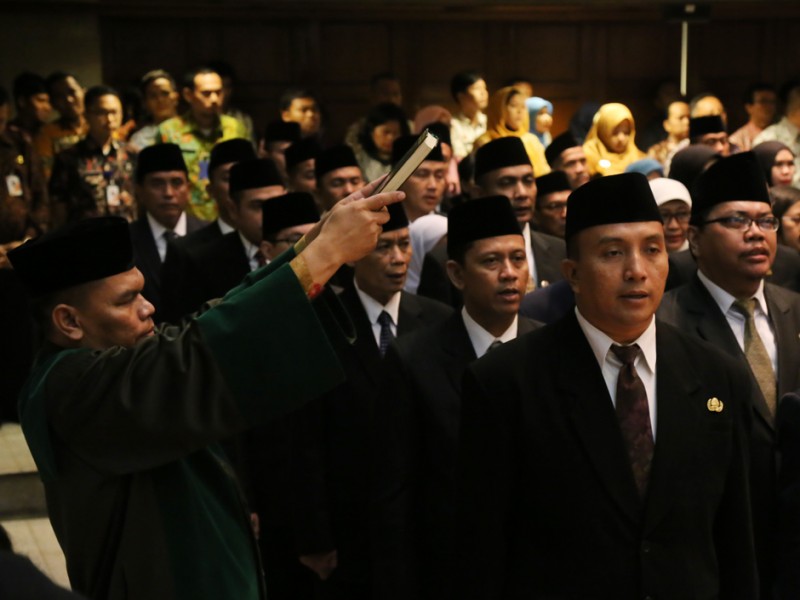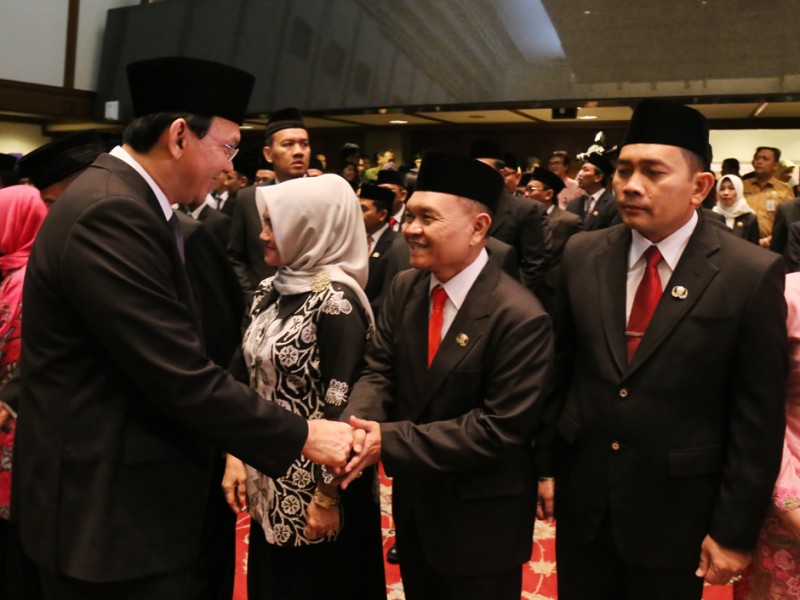 Gubernur DKI Jakarta, Basuki Tjahaja Purnama melantik 103 Pejabat Eselon II, Eselon III dan Eselon IV di Balai Kota DKI Jakarta, Jumat (01/7). (Foto: Reza/Beritajakarta.com)