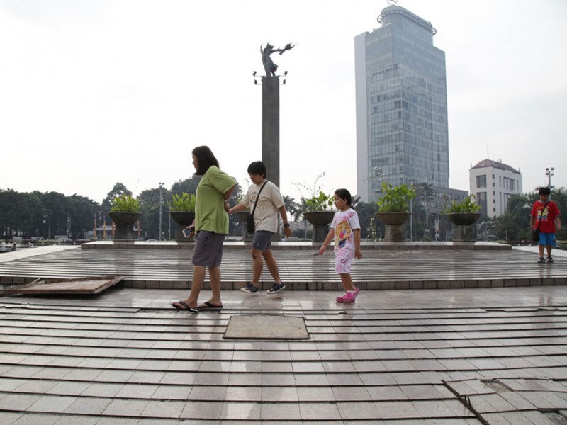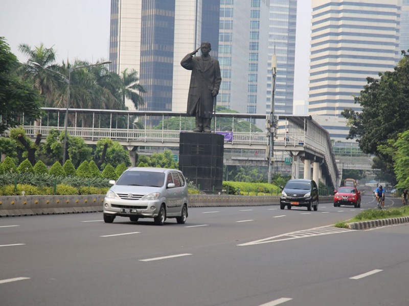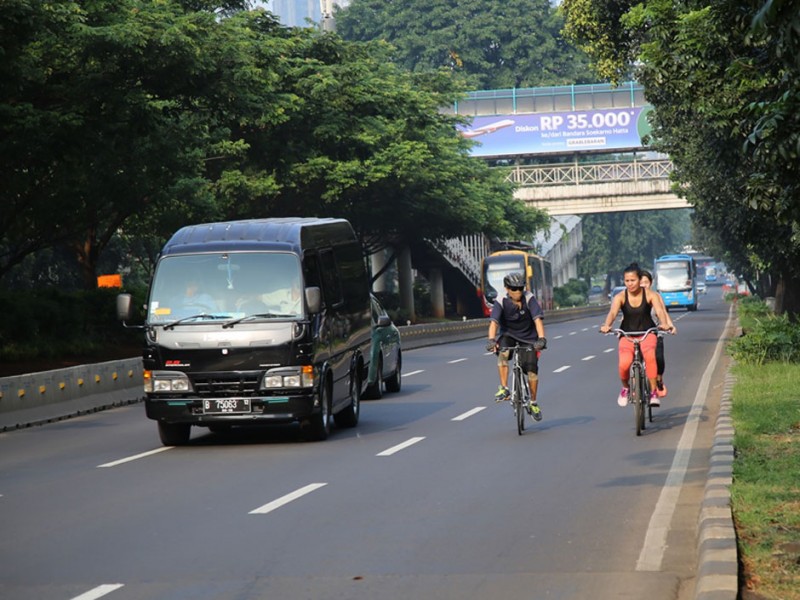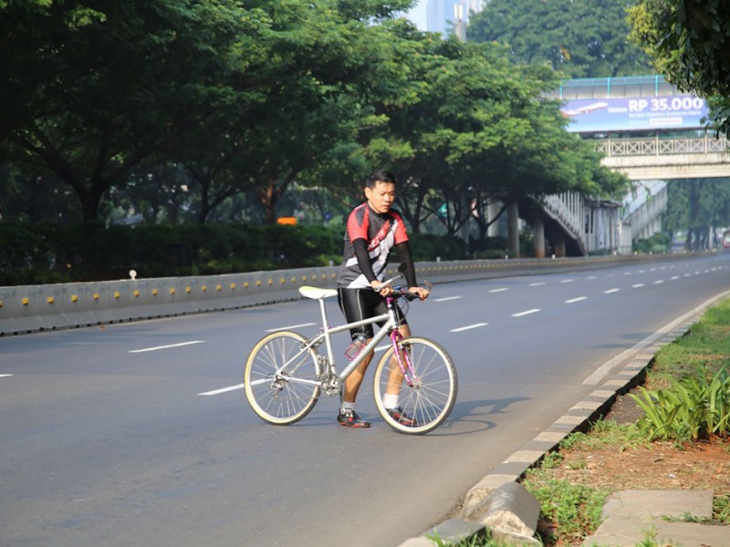 Warga Jakarta masih melakukan aktifitas olahraga meski Hari Bebas Kendaraan Bermotor (HBKB) ditiadakan di Jalan MH Thamrin dan Jalan Sudirman Jakarta Pusat, Minggu (3/7). HBKB ditiadakan terkait libur panjang Lebaran. (Foto: Yopie/Beritajakarta.com)