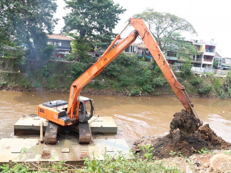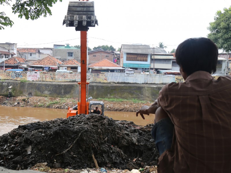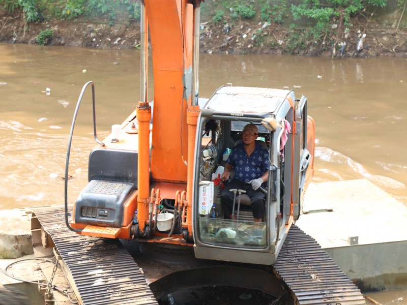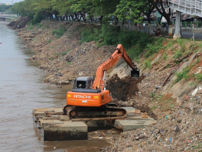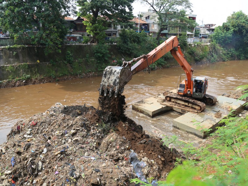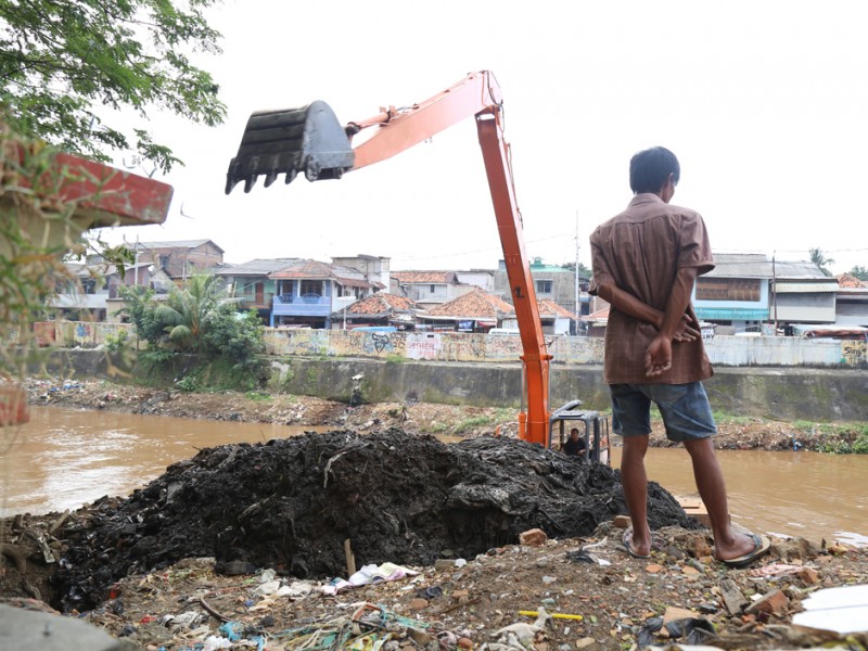 Dinas Tata Air DKI Jakarta melakukan normalisasi Kali Ciliwung di Kelurahan Pasar Manggis, Setiabudi, Jakarta Selatan, Selasa (12/7). Normalisasi ini dilakukan untuk memaksimalkan daya tampung air serta mengant isipasi ancaman banjir. (Foto: Reza/Beritajakarta.com)