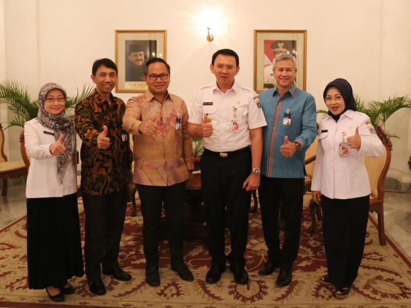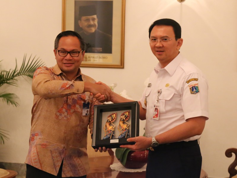 Gubernur DKI Jakarta, Basuki Tjahaja Purnama menerima Direktur Utama PT Bank Mandiri di Balai Kota DKI Jakarta, Rabu (13/7). Pertemuan ini terkait dukungan Bank Mandiri untuk program-program Pemerintah Provinsi DKI Jakarta yang akan membuat kebijakan Pemprov DKI Jakarta yang non tunai. (Foto: Reza/Beritajakarta.com)
