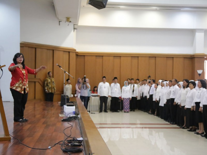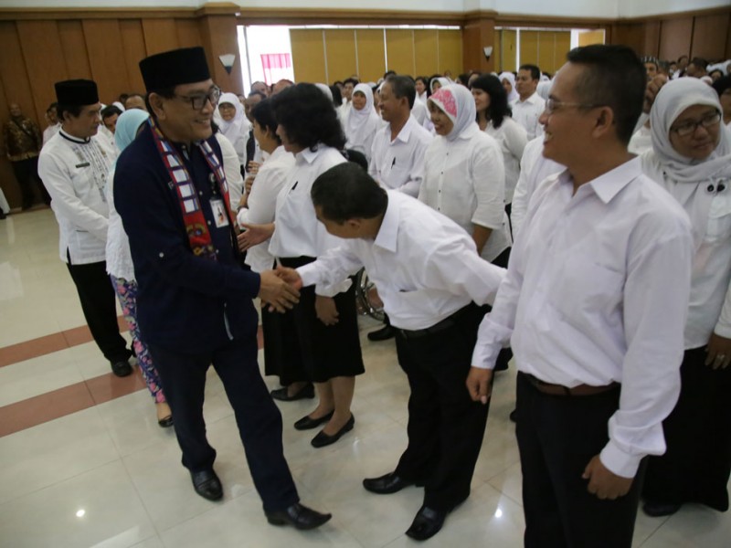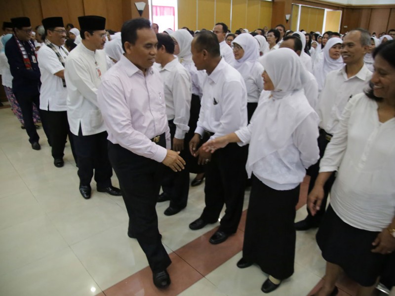 Wakil Gubernur DKI Jakarta, Djarot Saiful Hidayat menyerahkan SK CPNS Tahap Ke-2 kepada 741 Guru Bantu di Gedung Dinas Teknis Abdul Muis, Jalan Abdul Muis, Jakarta Pusat, Kamis (14/7).(Foto: Yopie/beritajakarta.com)
