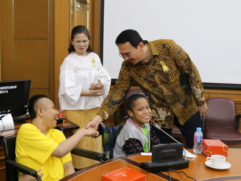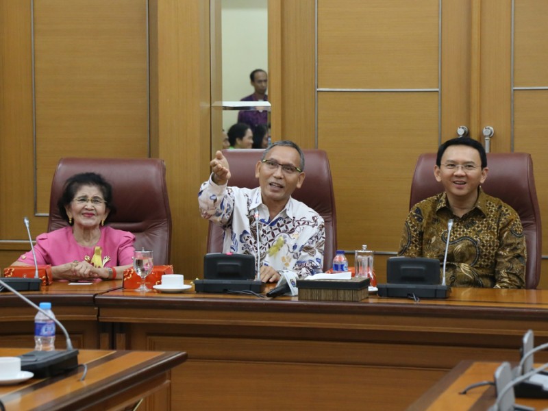 Gubernur DKI Jakarta, Basuki Tjahaja Purnama menerima kunjungan Yayasan Anyo Indonesia yang di pimpin oleh (YAI) di Balai Kota DKI Jakarta, Jumat (15/7). Kedatangan Yayasan Anyo Indonesia Indonesia ini dipinmpin langsung Ketua Yayasan Anyo Indonesia (YAI) Pinta Manulang Panggabean. (Foto: Reza/Beritajakarta.com)