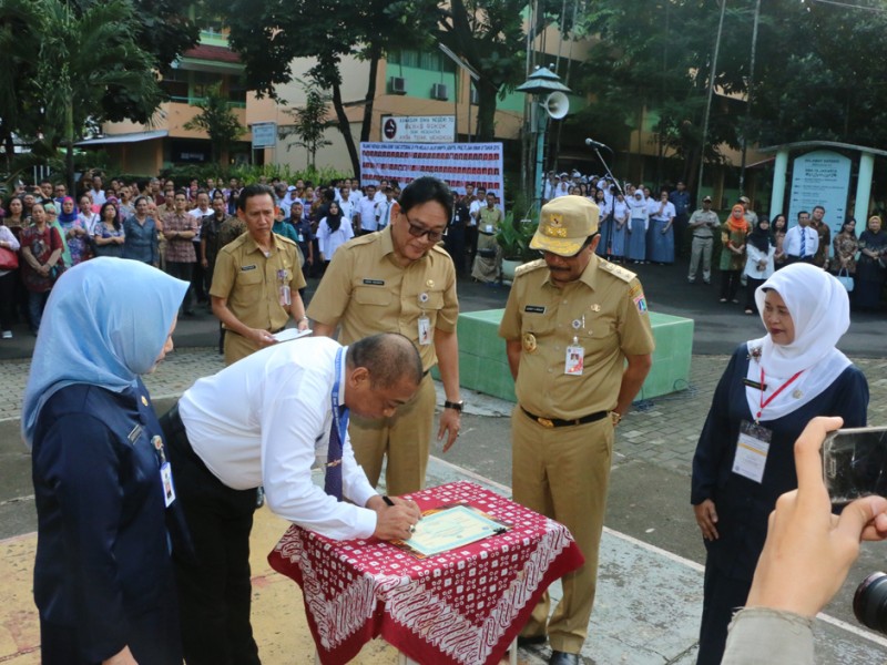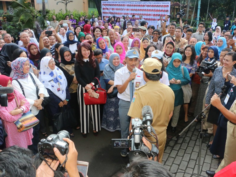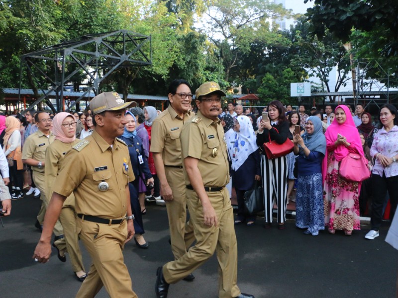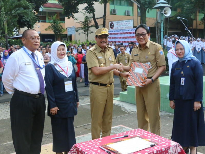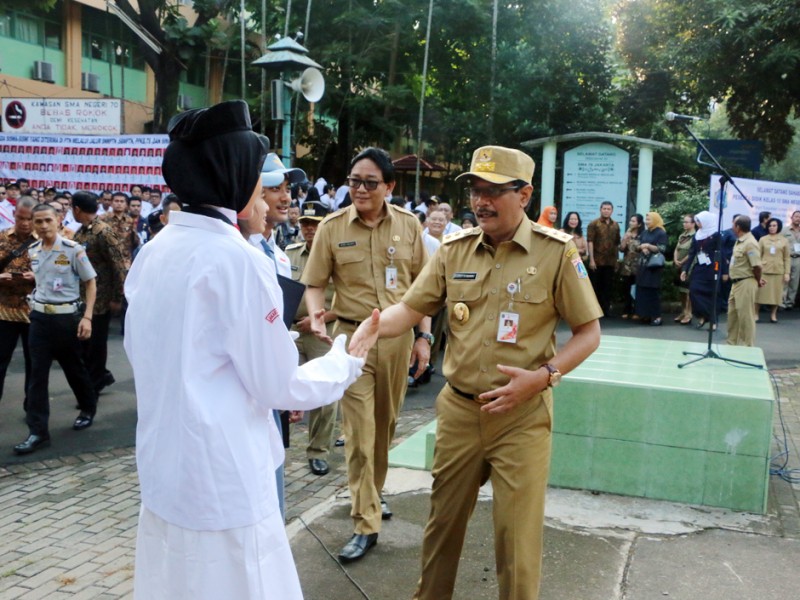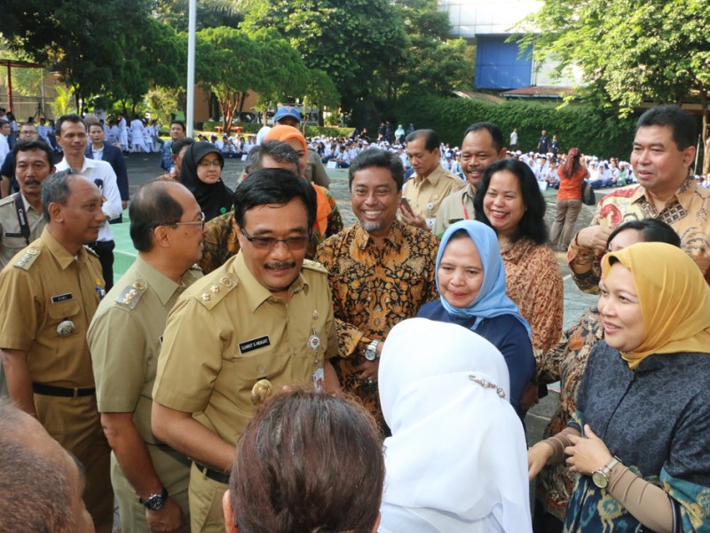 Wakil Gubernur DKI Jakarta, Djarot Saiful Hidayat menghadiri kegiatan Masa Pengenalan Lingkungan Sekolah (MPLS) di Sekolah Menengah Atas Negeri (SMAN) 70 Jakarta, Jalan Bulungan 1, Kecamatan Kebayoran Baru,Jakarta Selatan, Senin (18/7). Turut hadir Kepala Dinas Pendidikan, Sopan Adrianto serta Wali Kota Jakarta Selatan, Tri Kurniadi. ( Foto: Yopie/Beritajakarta.com & Ichsan/Humas)