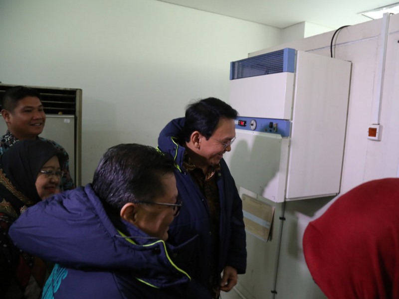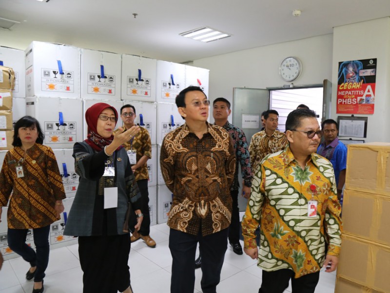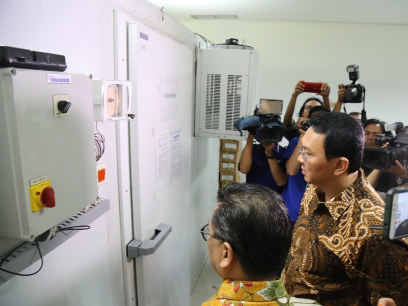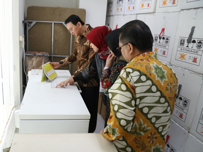 Gubernur DKI Jakarta, Basuki Tjahaja Purnama meninjau tempat penyimpanan vaksin Dinas Kesehatan DKI Jakarta di kantor Dinas Kesehatan, Jalan Kesehatan, Kelurahan Petojo Selatan, Kecamatan Gambir, Jakarta Pusat, Jumat (22/7). (Foto: Reza/Beritajakarta.com)
