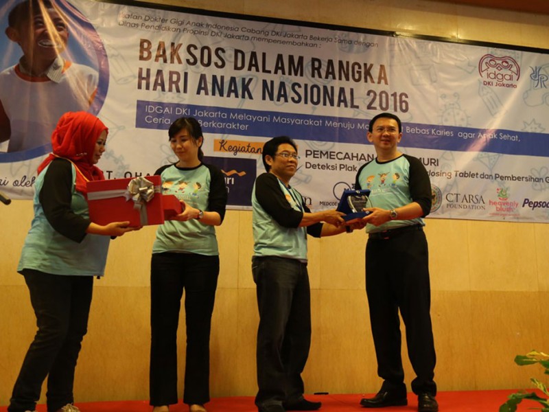 Gubernur DKI Jakarta, Basuki Tjahaja Purnama menghadiri puncak peringatan Hari Anak Nasional Tingkat Provinsi dan Bakti Sosial Kesehatan Gigi Anak Tahun 2016 di Balai Kota DKI Jakarta, Sabtu (23/7/2016). Acara Puncak Hari Anak Nasional ini diikuti ratusan siswa Pendidikan Anak Usia Dini (PAUD) se-DKI Jakarta.(Foto: Reza/Beritajakarta.com)