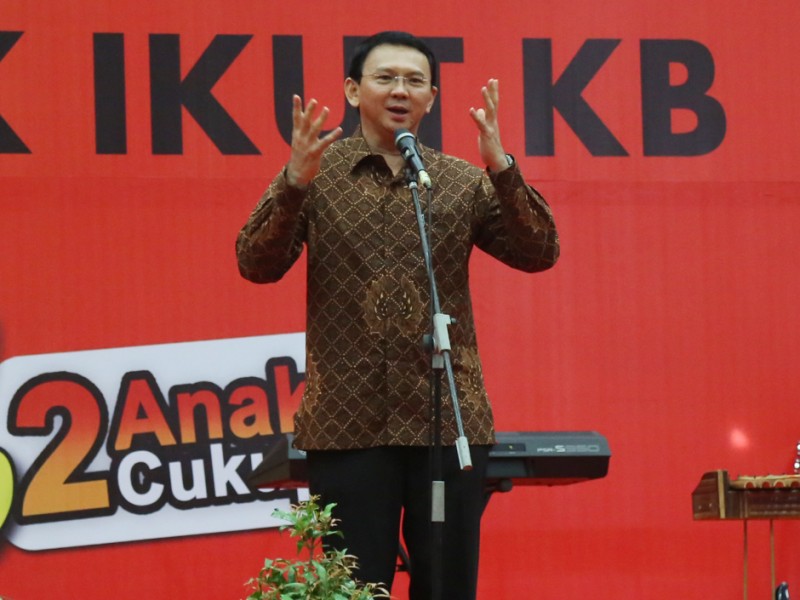 Gubernur DKI Jakarta, Basuki Tjhaja Purnama memberikan arahan dalam kegiatan pembekalan dan motivasi Kader Pembantu Pembina Keluarga Berencana (PPKB) RW di Ecovention, Ecopark Taman Impian Jaya Ancol, Jakarta Utara, Selasa (26/7). (Foto: Reza/Beritajakarta.com)