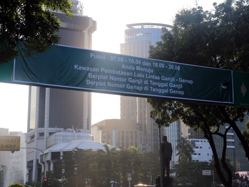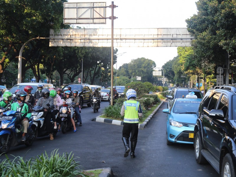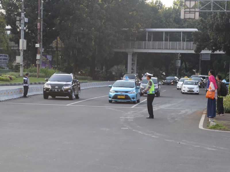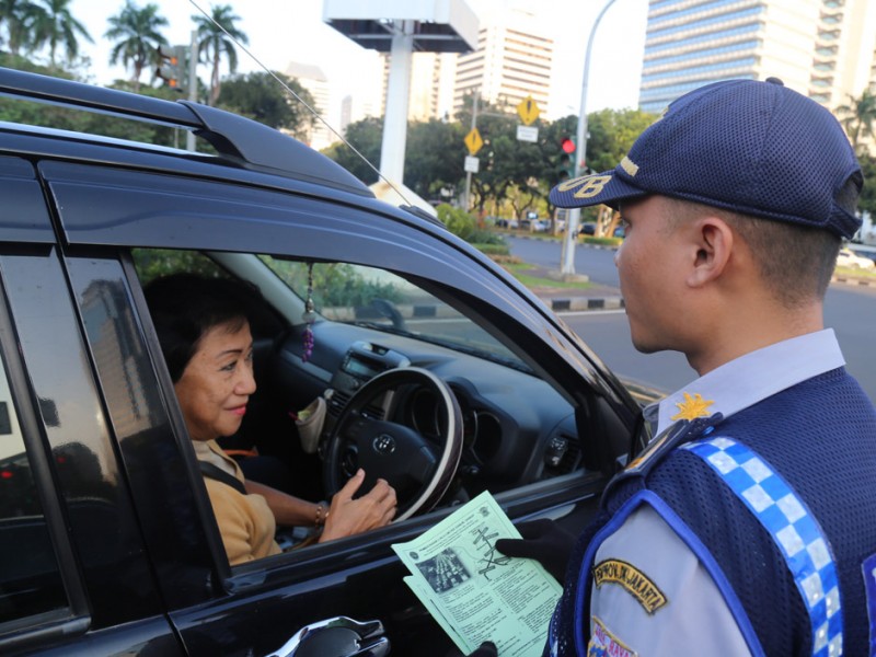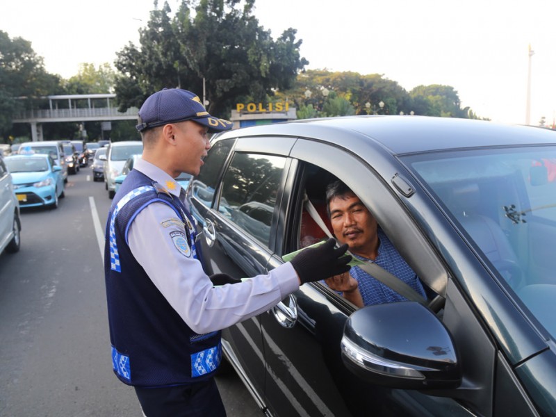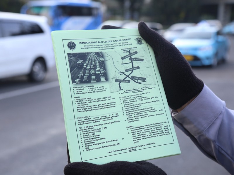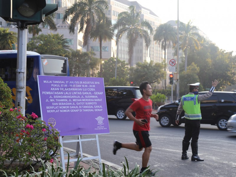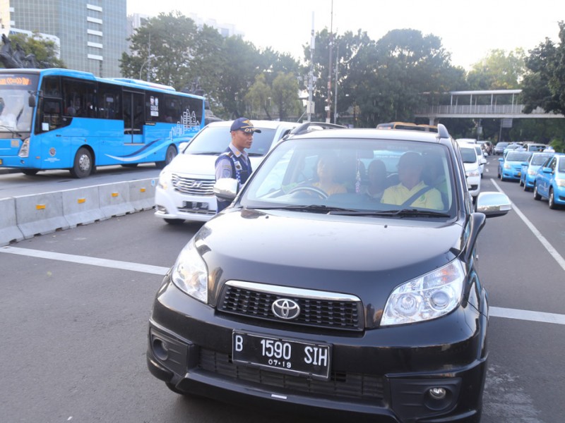 Dinas Perhubungan dan Transportasi DKI Jakarta bersama Ditlantas Polda Metro Jaya menggelar uji coba dan sosialisasi sistem ganjil genap di DKI Jakarta, Rabu (27/7). (Foto: Reza/Beritajakarta.com)