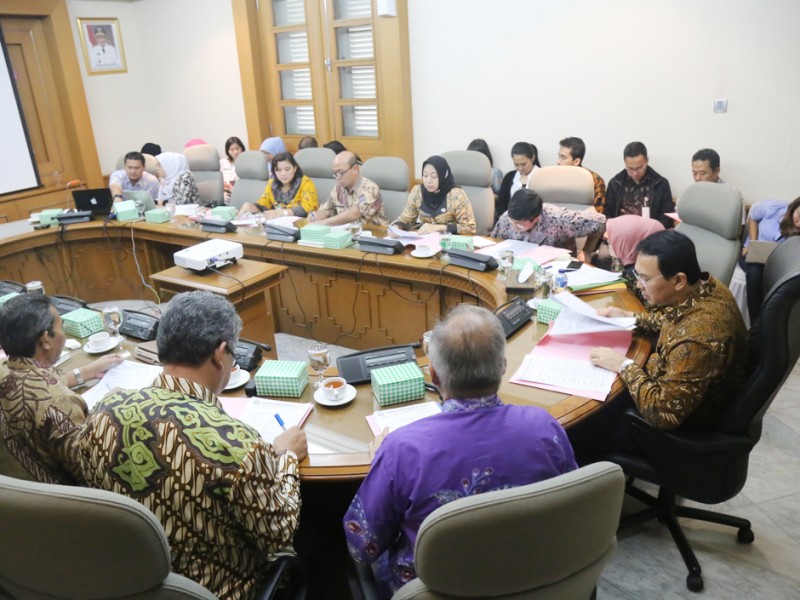 Gubernur DKI Jakarta, Basuki Tjahaja Purnama memimpin rapat Badan Koordinasi Penataan Ruang Daerah (BKPRD) Provinsi DKI Jakarta, di Balai Kota Jakarta, Jumat (29/7). Rapat dilakukan untuk memastikan program pembangunan di Jakarta tidak menyalahi aturan tata ruang dan memenuhi kaedah kelestarian lingkungan. (Foto: Reza/beritajakarta.com)