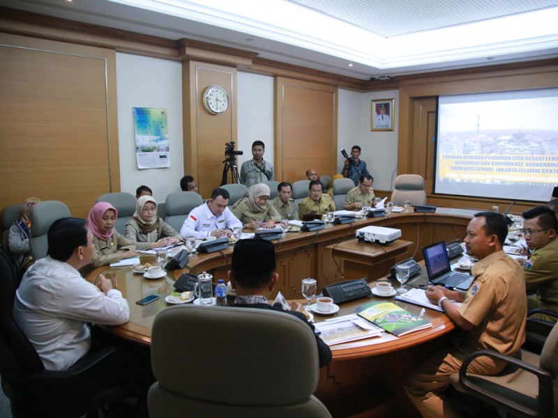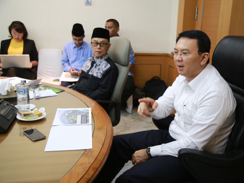 Gubernur DKI Jakarta, Basuki Tjahaja Purnama menerima kunjungan Kepala Lembaga Jakarta Islamic Center, KH Ahmad Shodri berserta pengurus Pusat Pengkajian dan Pengembangan Islam Jakarta di Balai Kota DKI Jakarta, Selasa (2/8/2016). Kunjungan Kepala Lembaga Jakarta Islamic Center ini terkait rencana pendirian Sekolah Menengah Kejuruan Negeri (SMKN) Teknologi Informatika dan Komunikasi Berasrama (Boarding School) di Jakarta Islamic Center (JIC) Jakarta Utara. (Foto: Yopie/beritajakarta.com)