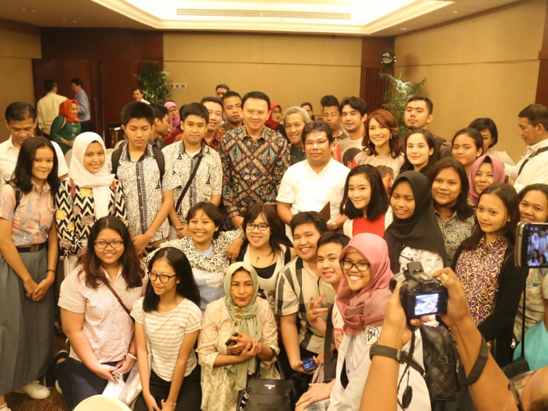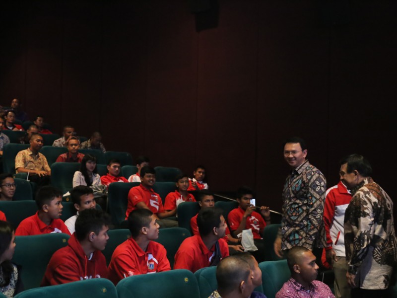 Gubernur DKI Jakarta, Basuki Tjahaja Purnama mengajak puluhan siswa SMA dan Sekolah Atlet Ragunan menonton bareng Film 3 Srikandi di Djakarta Theater XXI, Jalan MH Thamrin, Jakarta Pusat, Kamis (4/7). (Foto: Reza/Beritajakarta.com)