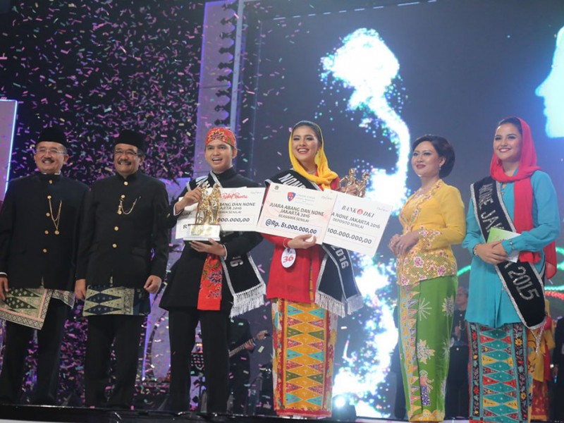 Taufik Hidayat dan Yasmine Kurnia menjadi Abang dan None (Abnon) DKI Jakarta Tahun 2016, Pemenang Abnon dan Penyerahan hadiah diberikan oleh Wakil Gubernur DKI Jakarta, Djarot Saiful Hidayat dan Ketua Badan Koordinasi Organisasi Wanita (BKOW) DKI Jakarta, Happy Farida Hidayat, Jumat (05/8). (Reza/Beritajakarta.com