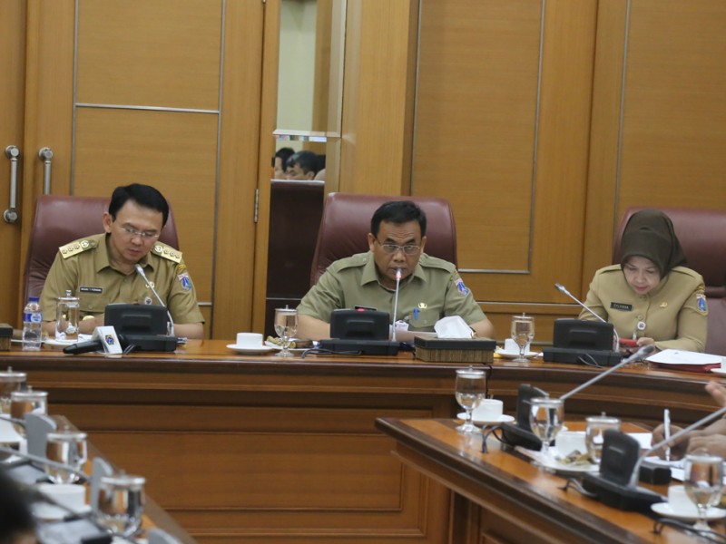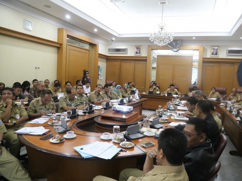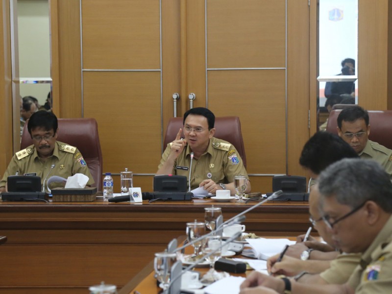 Gubernur DKI Jakarta, Basuki Tjahaja Purnama memimpin rapat rutin bersama jajaran Satuan Kerja Perangkat Daerah (SKPD) di Balai Kota DKI Jakarta , Senin (08/8). Rapim kali ini membahas progres pembangunan rusun di Jakarta. (Foto: Reza/Beritajakarta.com)