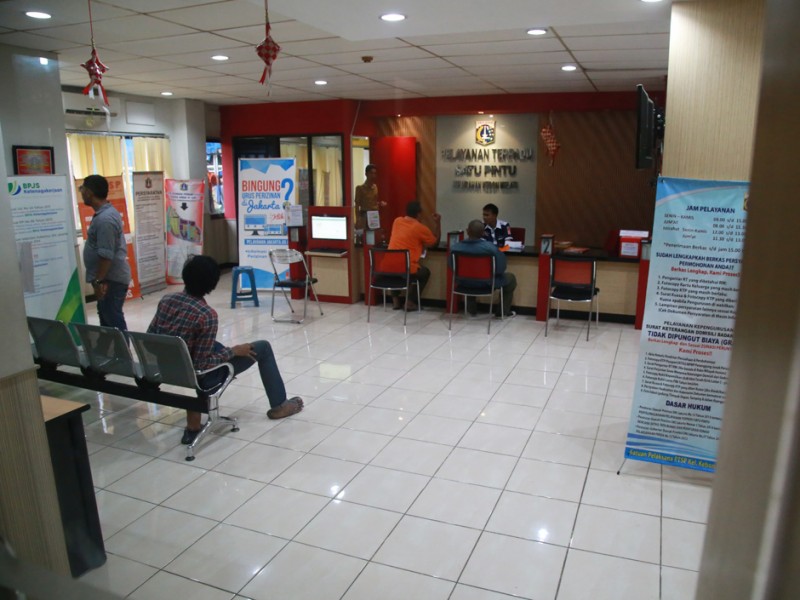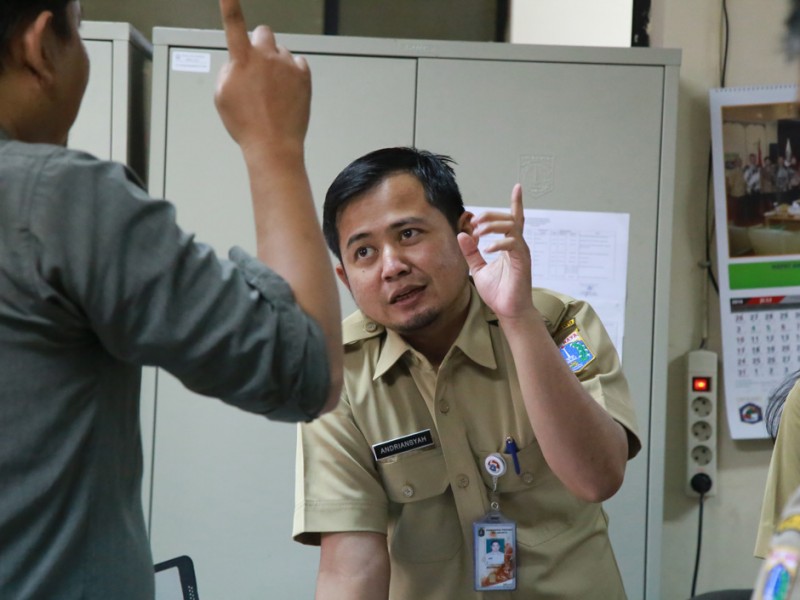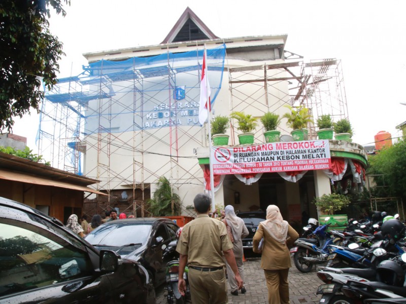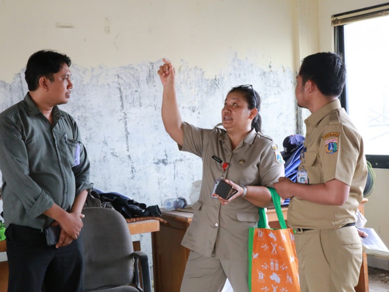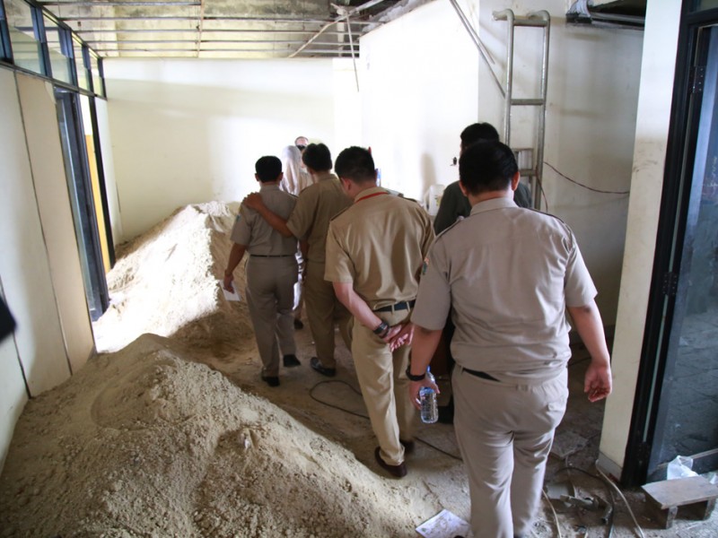 Tim monitoring Badan Perencanaan Pembangunan Daerah (Bappeda ) DKI Jakarta menemukan sejumlah ketidaksiapan pihak kontraktor dalam hal Keselamatan dan Kesehatan Kerja (K3) dalam proyek perbaikan gedung kantor Lurah Kebon Melati, Jakarta Pusat, Senin (8/8). (Foto: Yopie/beritajakarta.com)