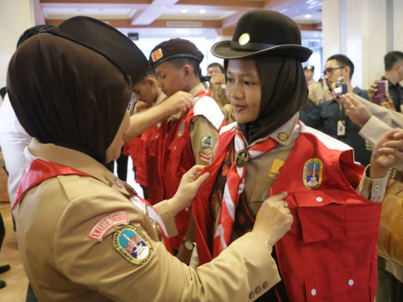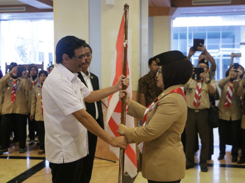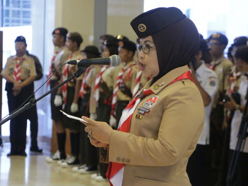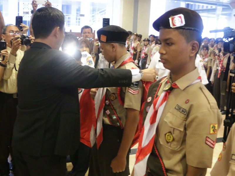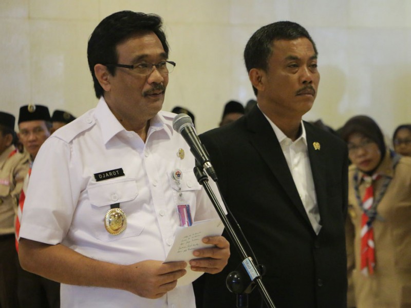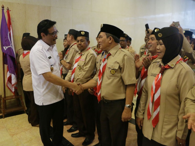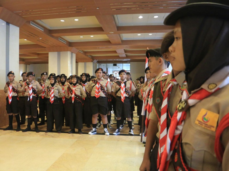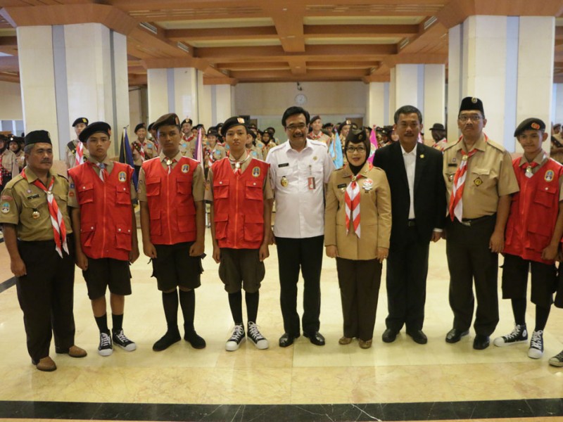 Wakil Gubernur DKI Jakarta, Djarot Saiful Hidayat melepas 251 Kontingen Daerah Gerakan Pramuka DKI Jakarta di Balai Kota, Rabu (10/8). Keseluruh Kontingen Pramuka ini akan mengikuti JAMNAS X 2016 pada 14 - 21 Agustus di Bumi Perkemahan Pramuka, Cibubur, Jakarta Timur. turut hadir dalam acara pelepasan Ketua DPRD DKI Jakarta, Prasetyo Edi Marsudi. (Foto: Yopie/Beritajakarta.com)