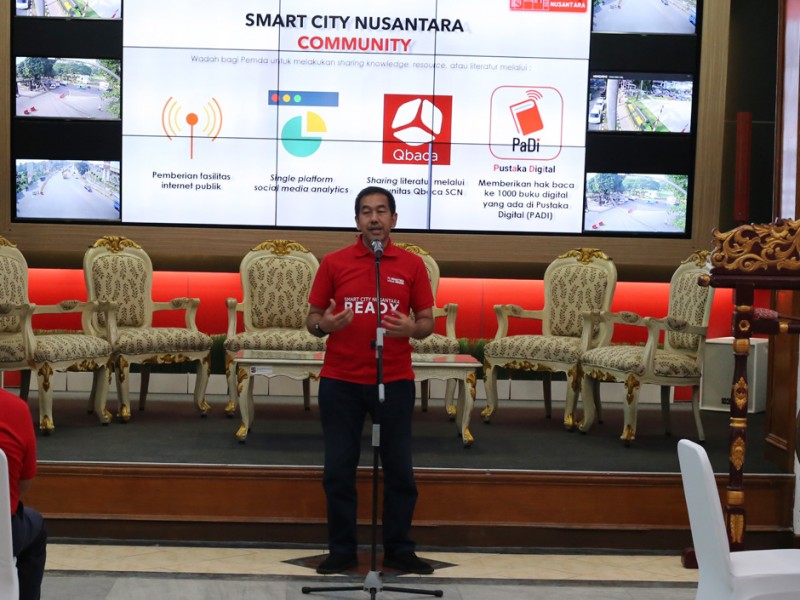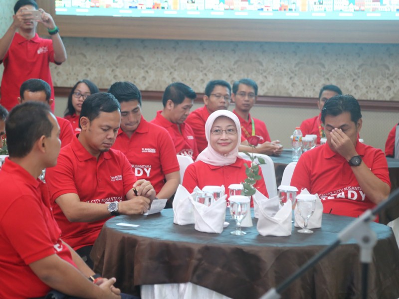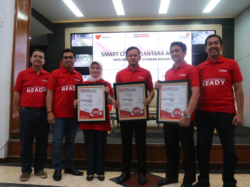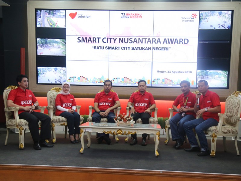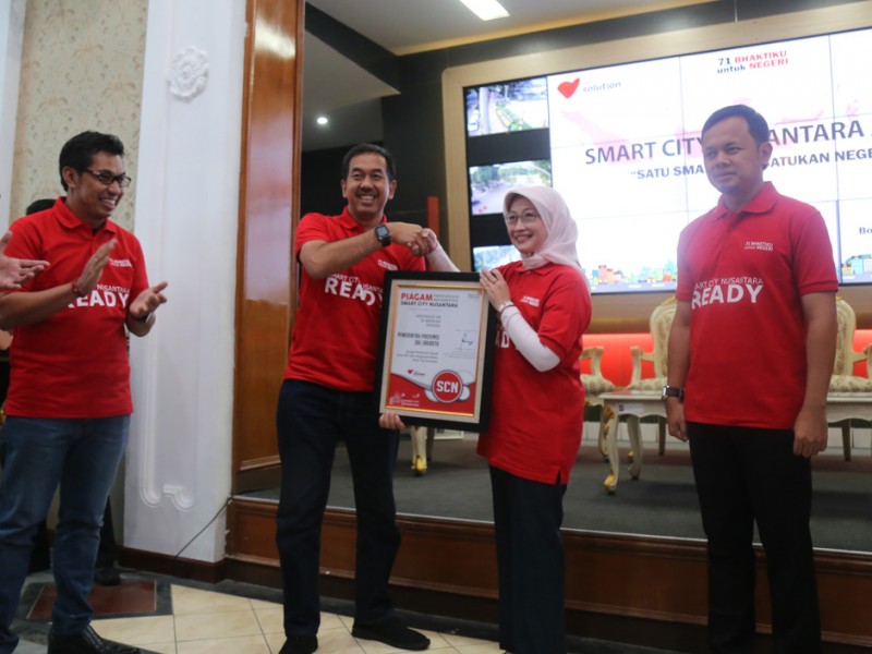 Pemerintah Provinsi DKI Jakarta mendapatkan penghargaan Smart City Nusantara dari PT Telkom Indonesia di Balai Kota Bogor, Jawa Barat, Rabu (11/8). Penghargaan ini diterima langsung oleh Kepala Dinas Komunikasi, Informatika dan Kehumasan DKI Jakarta, Dian Ekowati. (Foto: Reza/beritajakarta.com)