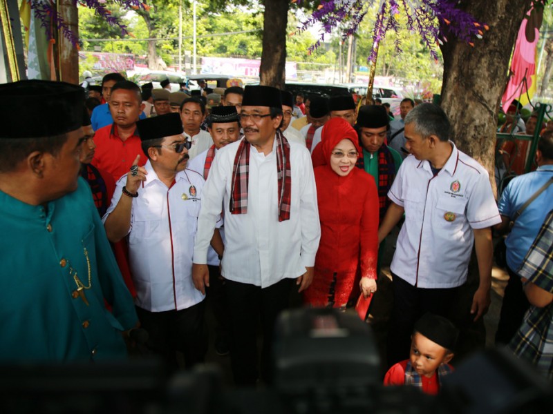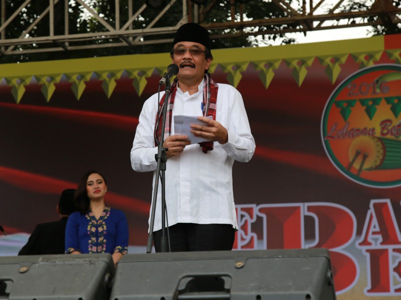 Wakil Gubernur DKI Jakarta, Djarot Saiful Hidayat menghadiri Lebaran Betawi di Lapangan Banteng, Jalan Lapangan Banteng, Kelurahan Pasar Baru, Kecamatan Sawah Besar, Jakarta Pusat, Sabtu (13/8). Selain mempererat silaturahmi, dalam pelaksanaan Lebaran Betawi ini juga turut menampilkan kekayaan seni budaya Betawi. (Foto: Yopie/beritajakarta)