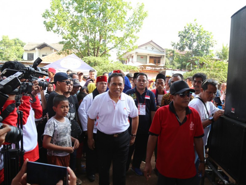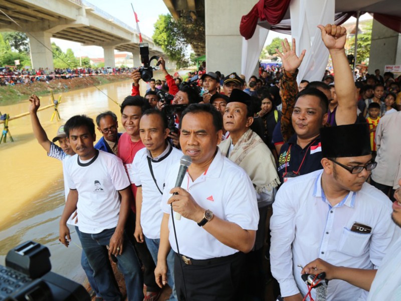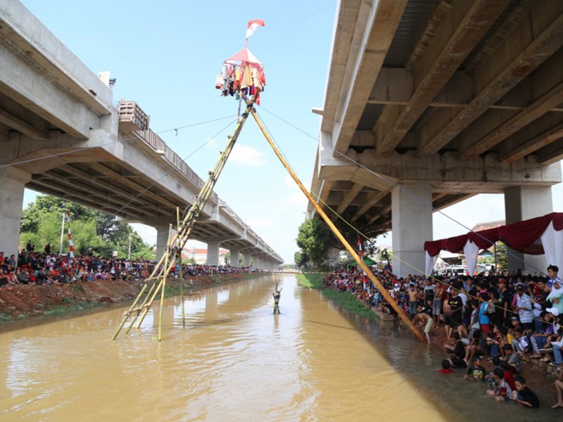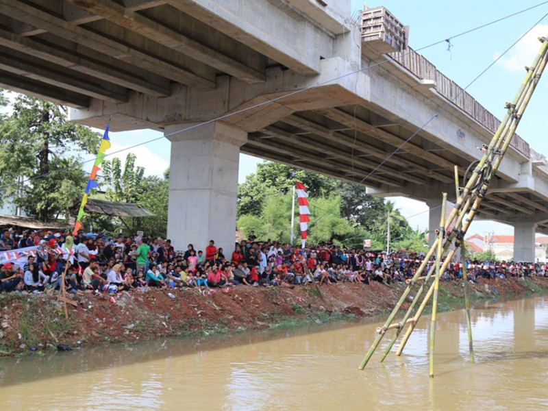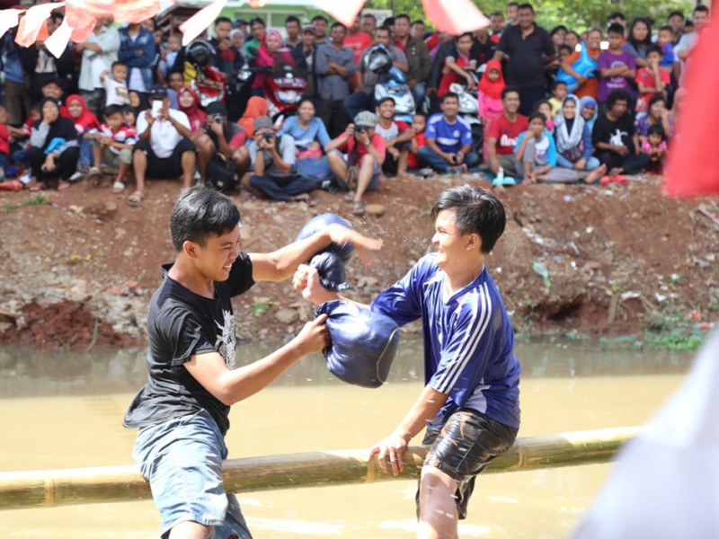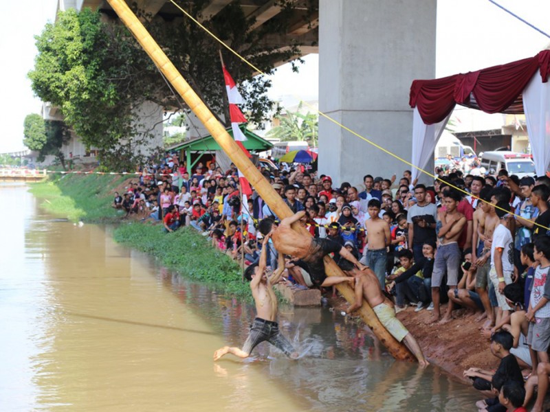 Sekretaris Provinsi DKI Jakarta, Saefullah membuka perlombaan panjat pinang yang diadakan oleh warga di RT 002 RW 010, Kelurahan Cipinang Melayu, Kecamatan Makasar, Jakarta Timur, Rabu (17/8). (Foto: Reza/beritajakarta.com)