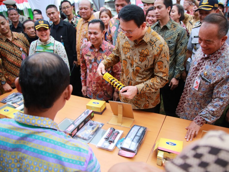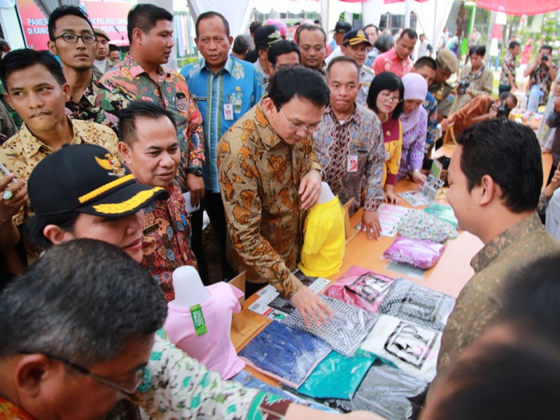 Gubernur DKI Jakarta, Basuki Tjahaja Purnama membuka pameran hasil produk pelaku Usaha Mikro Kecil Menengah DI Pusat Industri Kecil (PIK) Pulogadung Jakarta Timur, Jumat (19/8). Turut hadir dalam acara Wali Kota Jakarta Timur, Bambang Musyawardana dan Kepala Dinas Koperasi Usaha Kecil Menengah DKI Jakarta, Irwandi.(Foto: Yopie/Beritajakarta.com)