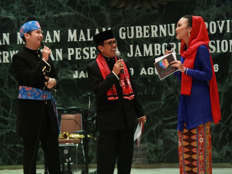 Deputi Gubernur Bidang Kebudayaan dan Pariwisata Sylviana Murni menerima puluhan Pembina Gerakan Pramuka dari 34 provinsi, di Balai Kota DKI Jakarta, Jumat (19/8/2016). Puluhan pembina pramuka ini hadir mengikuti jamuan makan malam disela-sela pelaksanaan Jambore Nasional X di Bumi Perkemahan Graha Wisata Cibubur, Jakarta Timur. (Foto: Yopie/Beritajakarta.com)