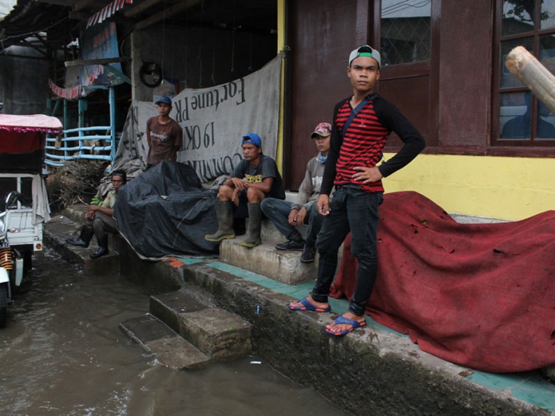 Genangan yang terjadi di kawasan Jalan Kemang Utara IX, Kelurahan Bangka ,Kecamatan Mampang Prapatan, Jakarta Selatan berangsur surut. Ketinggian air yang masih menggenangi jalan, Sabtu (20/8/2016) pukul 12.30, hanya tersisa sekitar 10 sentimeter.(Foto: Reza/Beritajakarta.com)