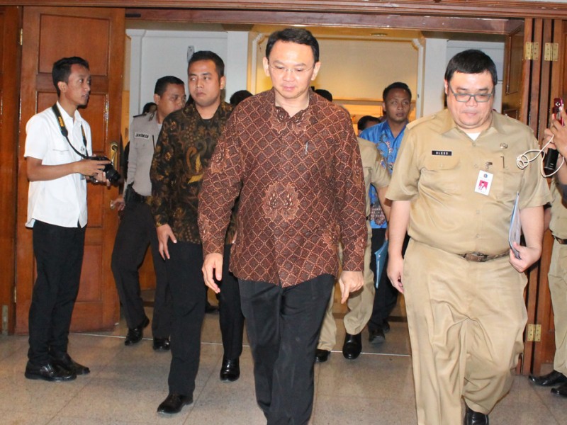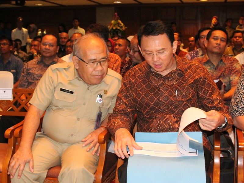 Gubernur DKI Jakarta, Basuki Tjahaja Purnama memberikan pengarahan kepada para Kontraktor BUMN, BUMD, Swasta dan Penyedia Beton Precast di Balai Kota DKI Jakarta, Selasa (23/8). Pengarahan ini untuk mempercepat proses lelang pengerjaan proyek di Tahun 2017 mendatang . (Foto: Reza/beritajakarta.com)