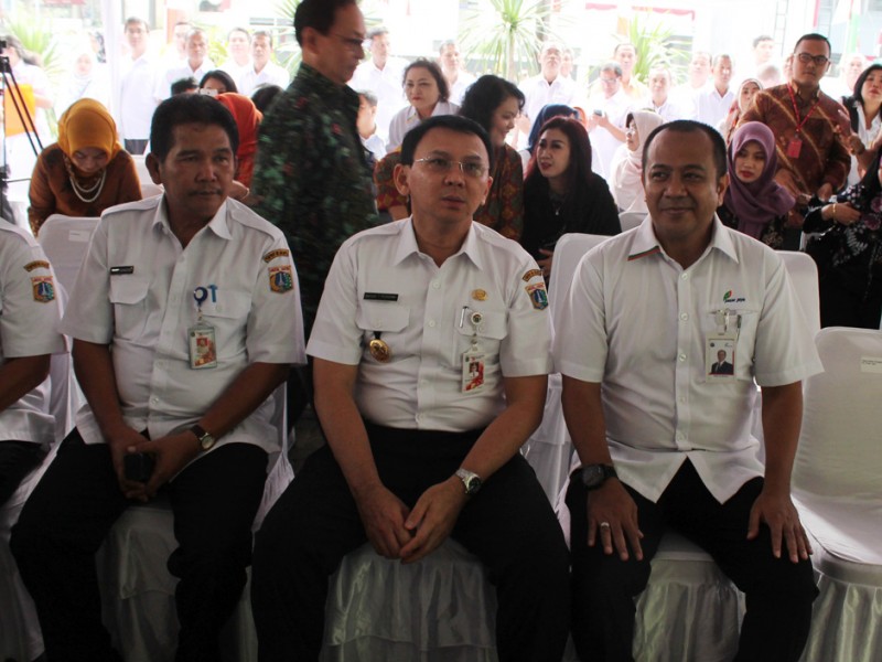 Gubernur DKI Jakarta, Basuki Tjahaja Purnama meresmikan kantor baru PD Pasar Jaya, di Jalan Cikini Raya, Kecamatan Menteng, Jakarta Pusat, Rabu (24/8). (Reza/beritajakarta.com)