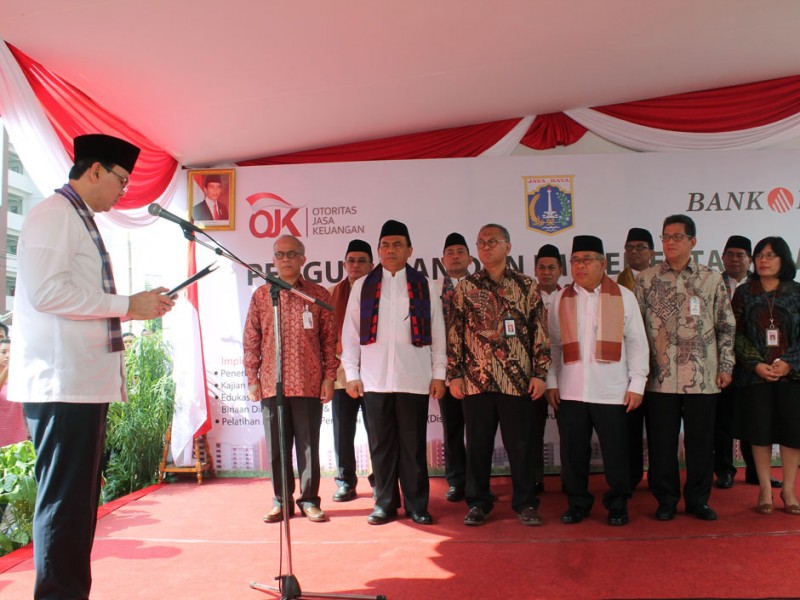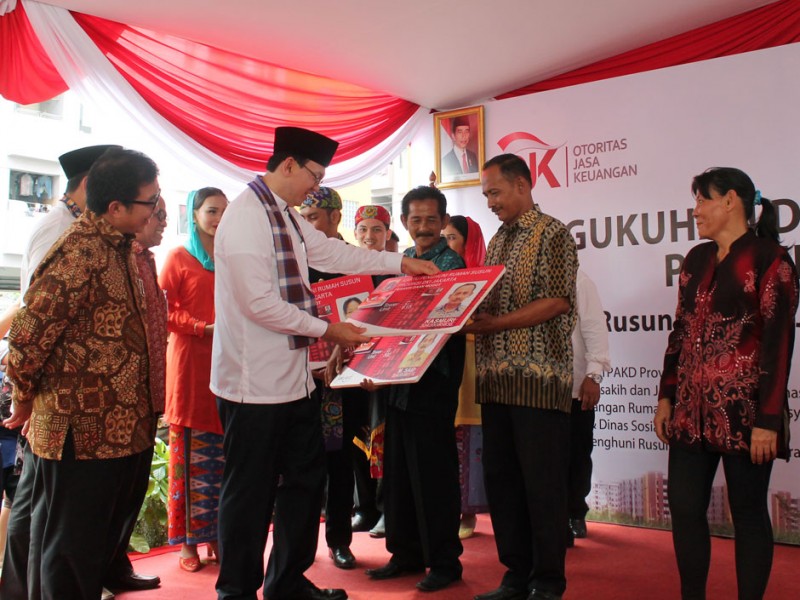 Gubernur DKI Jakarta, Basuki Tjahaja Purnama mengukuhkan Tim Percepatan Akses Keuangan di Daerah (TPAKD) di Rusunawa Daan Mogot (Pesakih) Jl. Desa Semanan, Kecamatan Kalideres, Jakarta Barat, Kamis (25/8). (Foto: Reza/Beritajakarta.com)