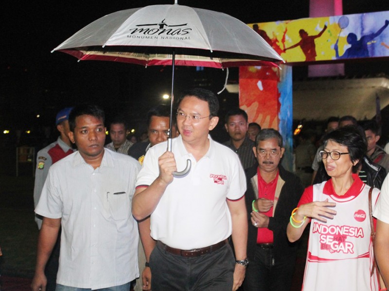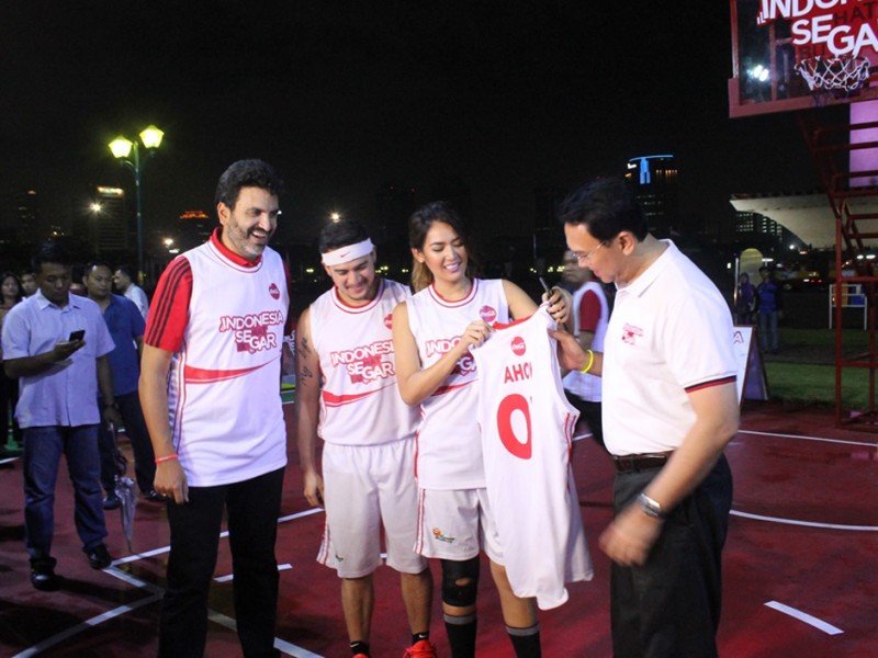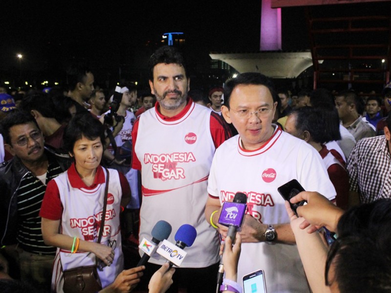 Gubernur DKI Jakarta, Basuki Tjahaja Purnama meresmikan lapangan olahraga di Plaza Timur Monumen Nasional (Monas),