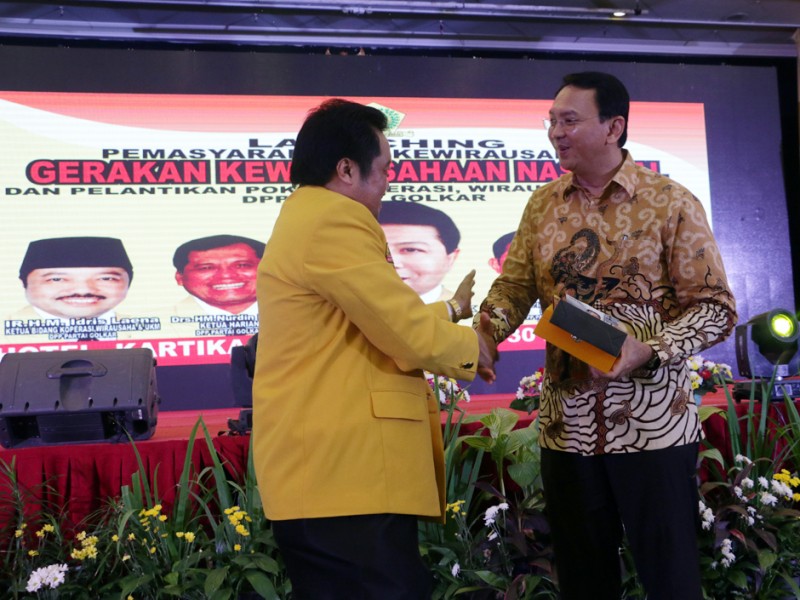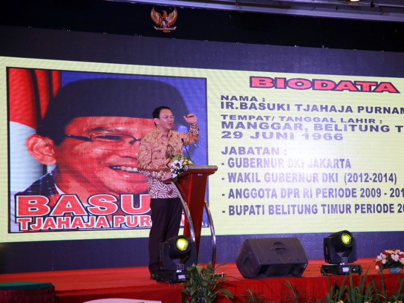 Gubernur DKI Jakarta, Basuki Tjahaja Purnama memberikan sambutan dalam acara Launching Gerakan Kewirausahaan Nasional (GKN) dan Kegiatan Pemasyarakatan Kewirausahaan di Ballroom Hotel Kartika Chandra, Jl Gatot Subroto Kav 18-20, Jakarta Selatan, Selasa (30/8). (Foto: Yopie/beritajakarta.com)