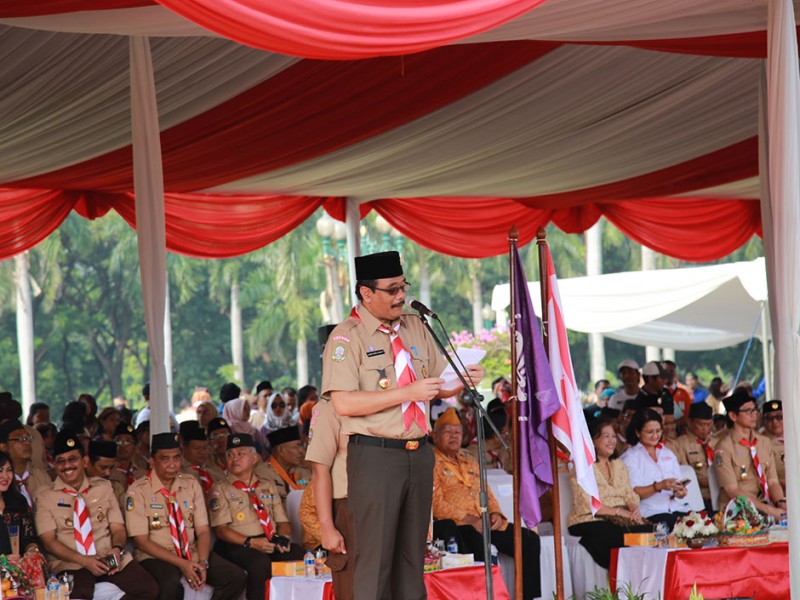 Wakil Gubernur DKI Jakarta, Djarot Saiful Hidayat menjadi Pembina Upacara dalam Apel Besar Memperingati HUT Pramuka ke-55 Tahun 2016 di Lapangan Silang Monas Sektor Selatan, Jakarta Pusat, Sabtu (3/9).(Foto : Yopie/Beritajakarta.com)