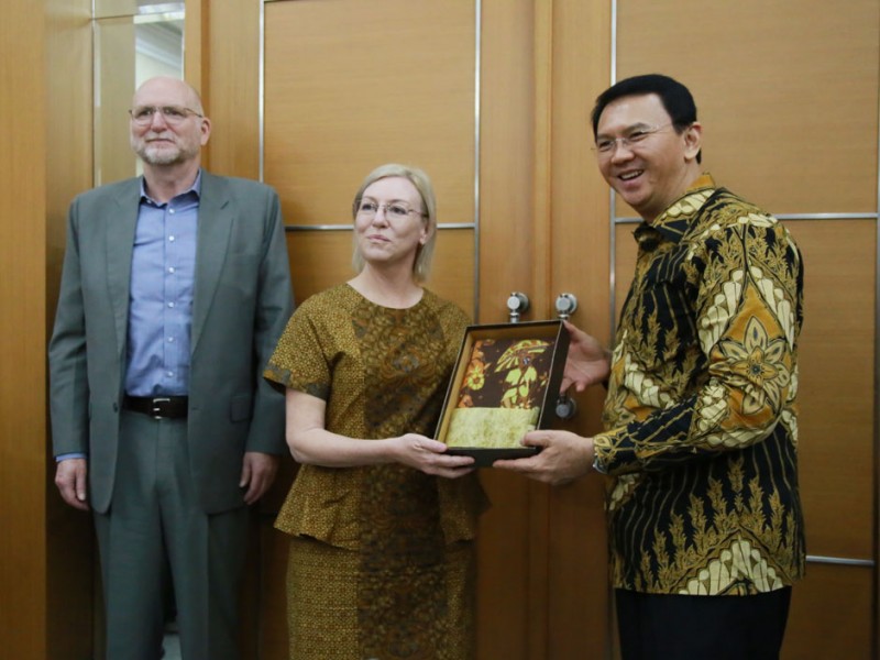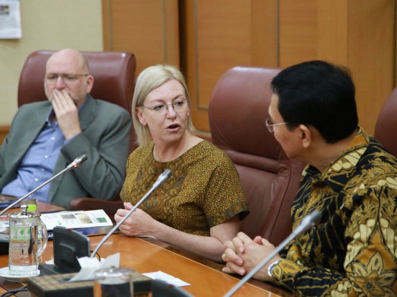 Gubernur DKI Jakarta, Basuki Tjahaja Purnama menerima kunjungan Menteri Pertanian dan Perikanan Queensland, Leanne Donaldson beserta delegasi di Balai Kota DKI Jakarta, Selasa (6/9/2016). Dalam kunjungan ini dibahas kerjasama penyediaan daging sapi dan ketahanan pangan. (Foto: Yopie/Beritajakarta.com)