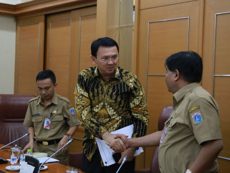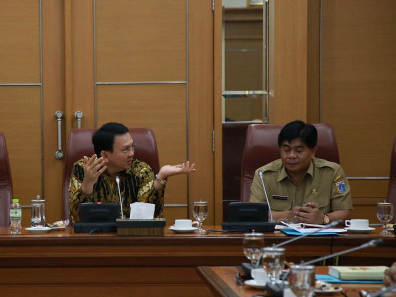 Gubernur DKI Jakarta, Basuki Tjahaja Purnama mendengar pemapar para vendor penyedia LED di Balai Kota Jakarta, Selasa (6/9). Para Vendor LED ini nantinya akan ikut dalam pengadaan lampu penerangan LED dengan menggunakan Smart System.(Foto: Yopie/Beritajakarta.com)
