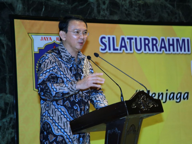 Gubernur DKI Jakarta, Basuki Tjahaja Purnama menghadiri silaturahmi dengan para ulama dan Umaro di Balai Kota Jakarta, Rabu (7/9). Turut hadir dalam acara ini Asisten Bidang Kesejahteraan Rakyat Sekretaris Daerah Provinsi DKI Jakarta, Fatahillah, Wali Kota Jakarta Selatan, Tri Kurniadi, Wakil Walikota Jakarta Timur, Husein Murad serta Kepala Biro Kesejahteraan Sosial, Adi Ariantara. (Foto: Yopie/Beritajakarta.com)