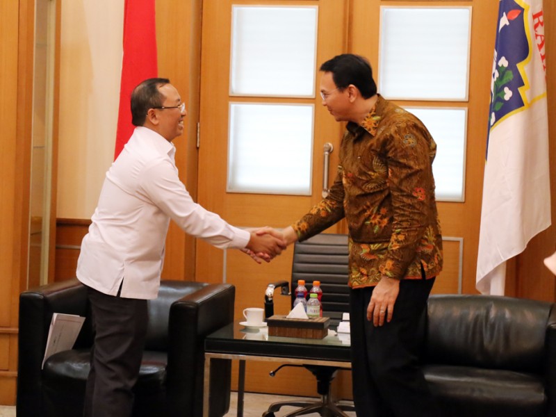 Gubernur DKI Jakarta, Basuki Tjahaja Purnama menerima Sekretaris Kementerian Sekretariat Negara bersama Direktur Utama Pusat Pengelolaan Komplek Gelora Bung Karno di Balai Kota DKI Jakarta, Kamis (8/9). Pertemuan initerkait perkembangan pembangunan infrastruktur GBK untuk Asian Games. (Foto: Reza/Beritajakarta.com)