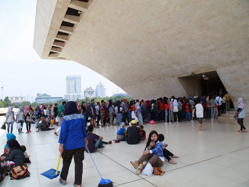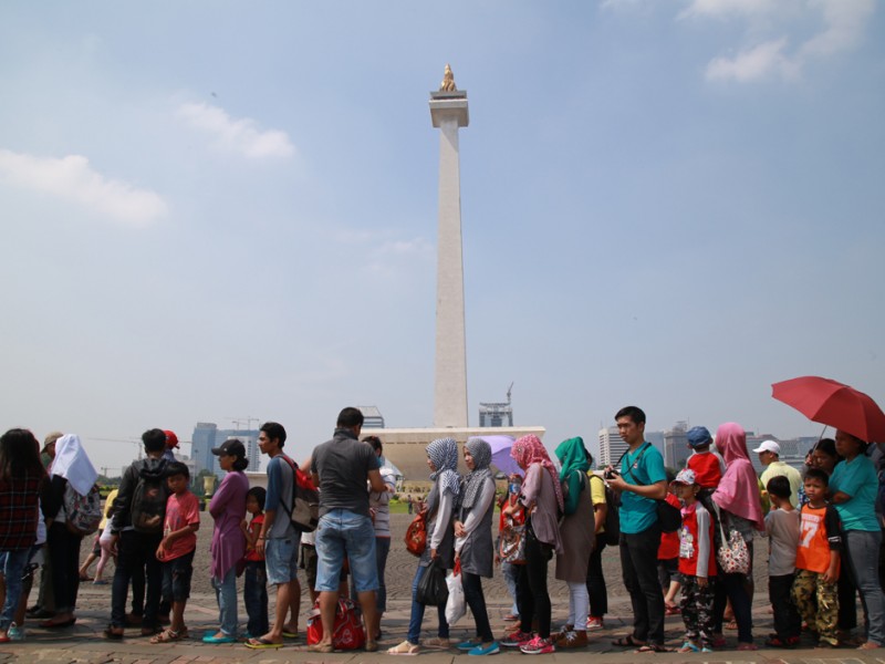 Ya, Monas masih menjadi salah satu destinasi wisata favorit warga untuk menikmati libur akhir pekan. Selain area taman yang rindang,
