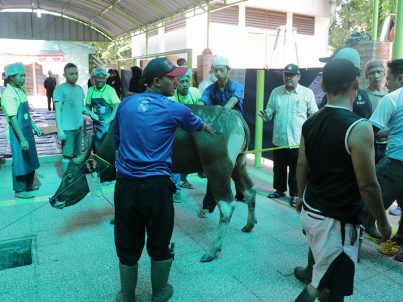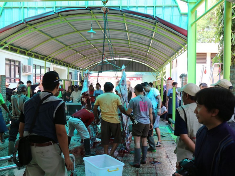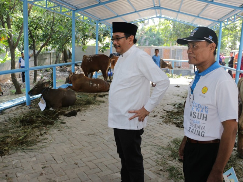 Wakil Gubernur DKI Jakarta, Djarot Saiful Hidayat memantauan penyembelihan hewan kurban di Masjid Al Azhar Pulogebang, Jakarta Timur, Senin (12/9). (Foto: Reza/Beritajakarta.com)