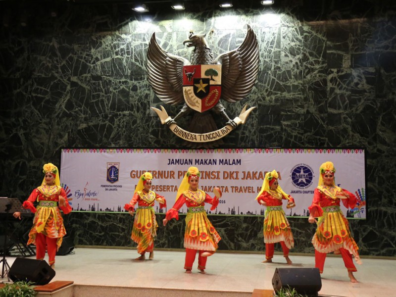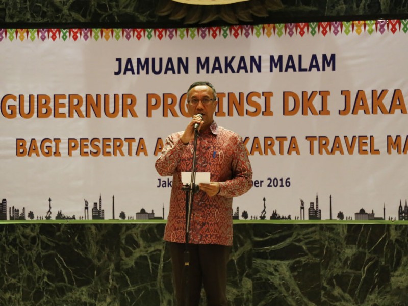 Kepala Dinas Pariwisata dan Kebudayaan Provinsi DKI Jakarta, Catur Laswanto menghadiri jamuan makan malam bersama para Delegasi Asita Jakarta Travel Mart (AJTM) 2016 dan Perwakilan Pengusaha dan Travel Anggota Associations Of The Indonesian Tours and Travel Agencies (Asita) dari Seluruh Indonesia di Balai Kota DKI Jakarta, Selasa (13/9). (Foto: Reza/Beritajakarta.com)