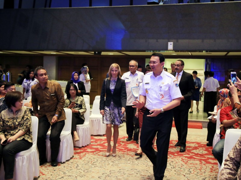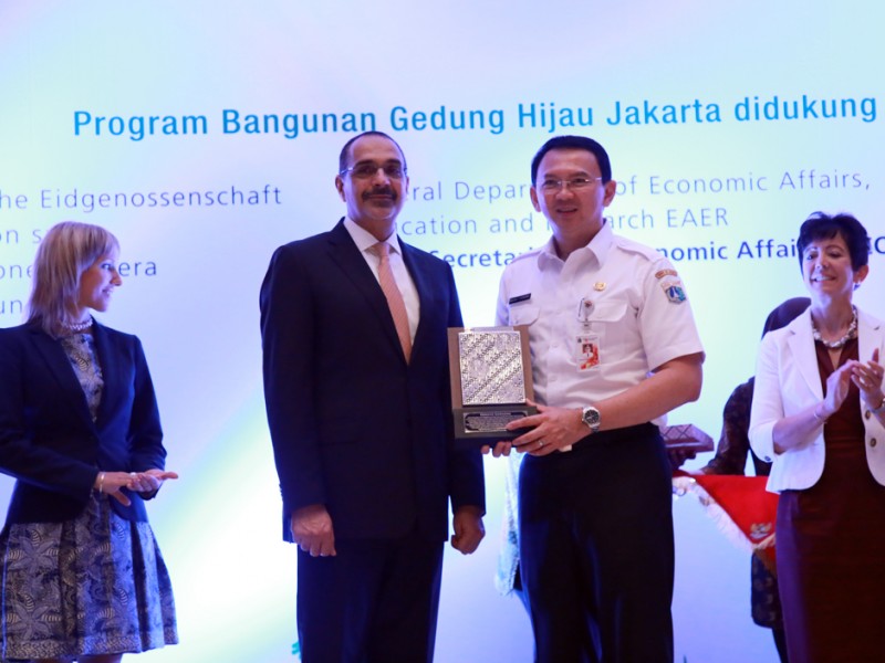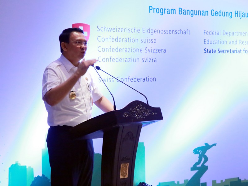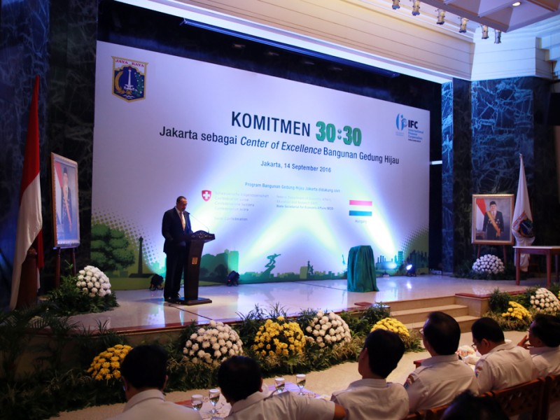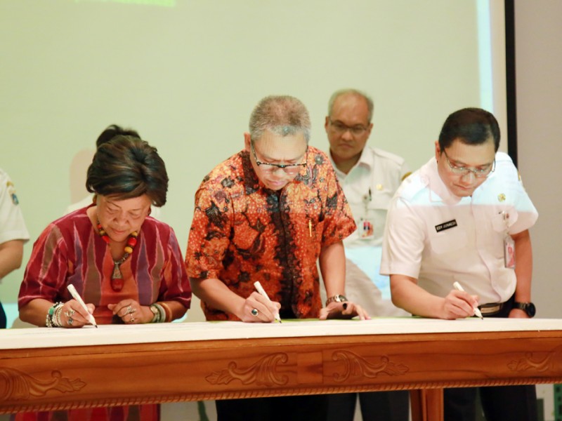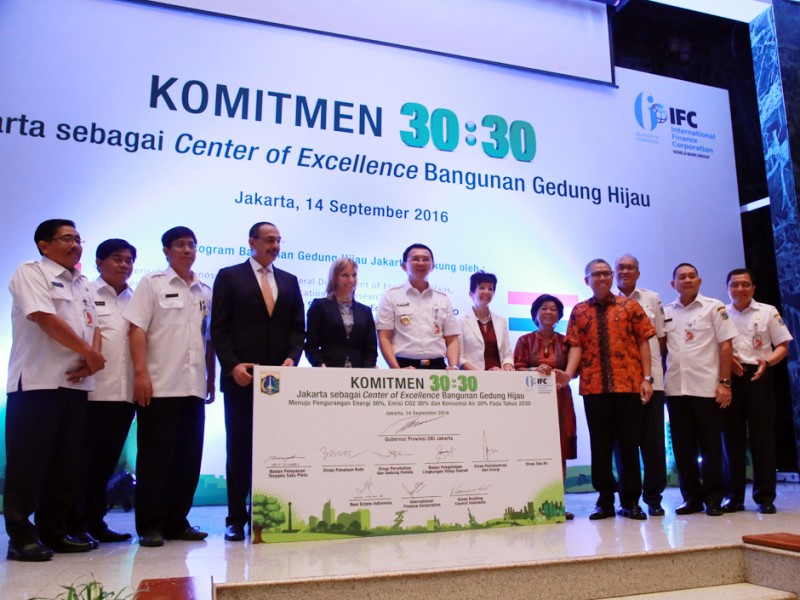 Pemerintah Provinsi DKI Jakarta mengukuhkan posisinya sebagai Centre of Excellence untuk gedung hijau ramah lingkungan di Balai Kota, Rabu (14/9). Pengukuhan ditandai dengan penandatanganan komitmen untuk mengurangi konsumsi energi air, dan emisi CO2 dari bangunan di Ibukota serta launching grand design oleh Gubernur DKI Jakarta, Basuki Tjahaja Purnama. Komitmen yang ditandatangani ini merupakan implementasi dari Peraturan Gubernur (Pergub) Nomor 38 tahun 2012 tentang Bangunan Gedung Hijau. (Foto: Yopie/beritajakarta.com)
